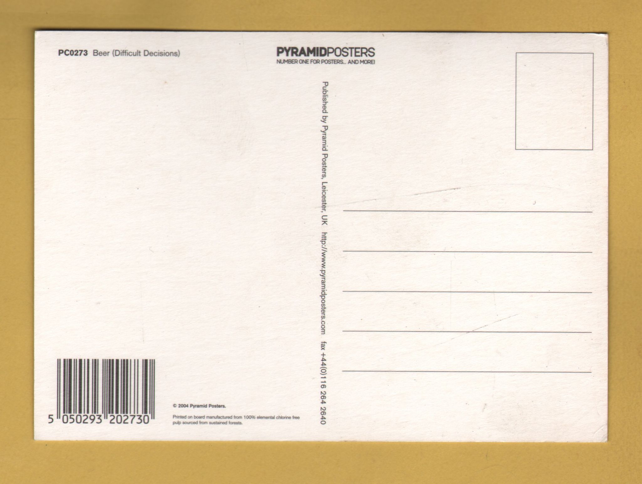 Tags: PC0273, Beer (Difficult Decisions):Unused, Pyramid Posters Postcard.
