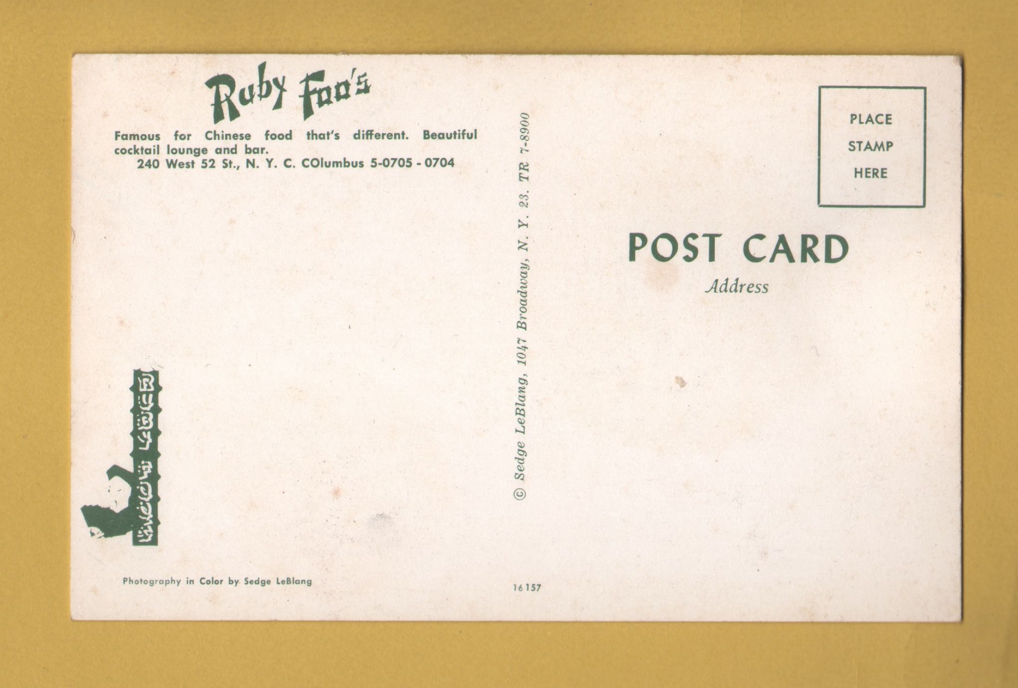 Ruby Foo`s & Sedge LeBlang Postcard.