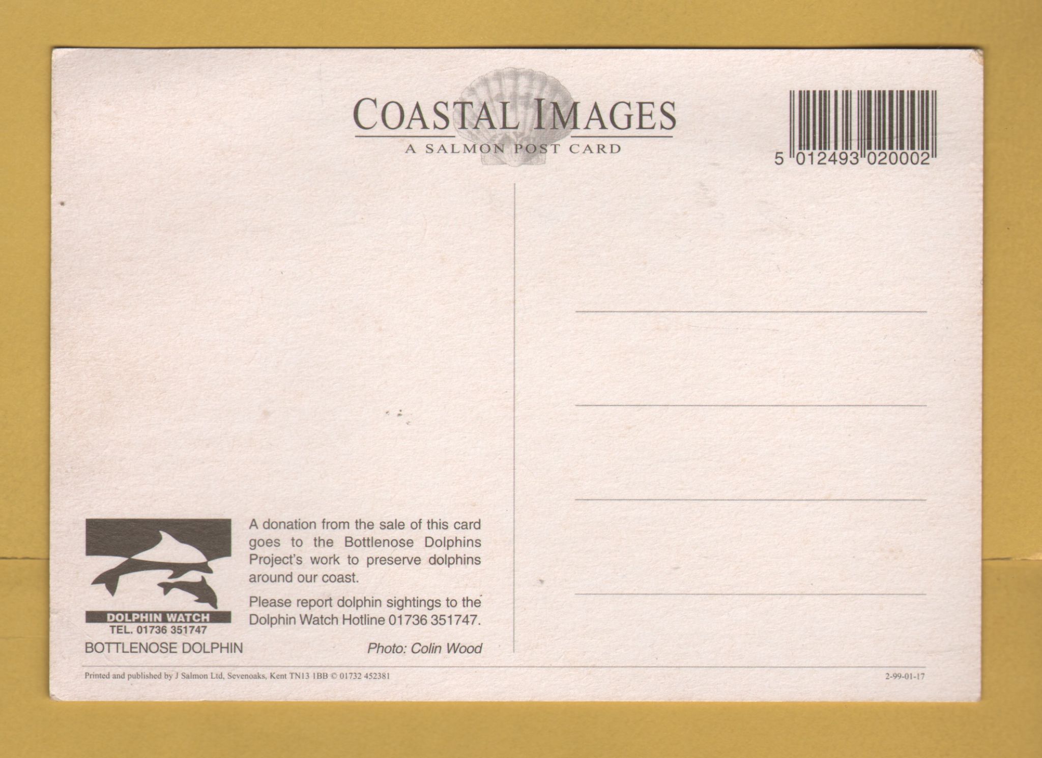 Tags: Bottlenose Dolphin, Dolphin Watch, Coastal Images:Unused, J.Salmon Ltd Postcard.