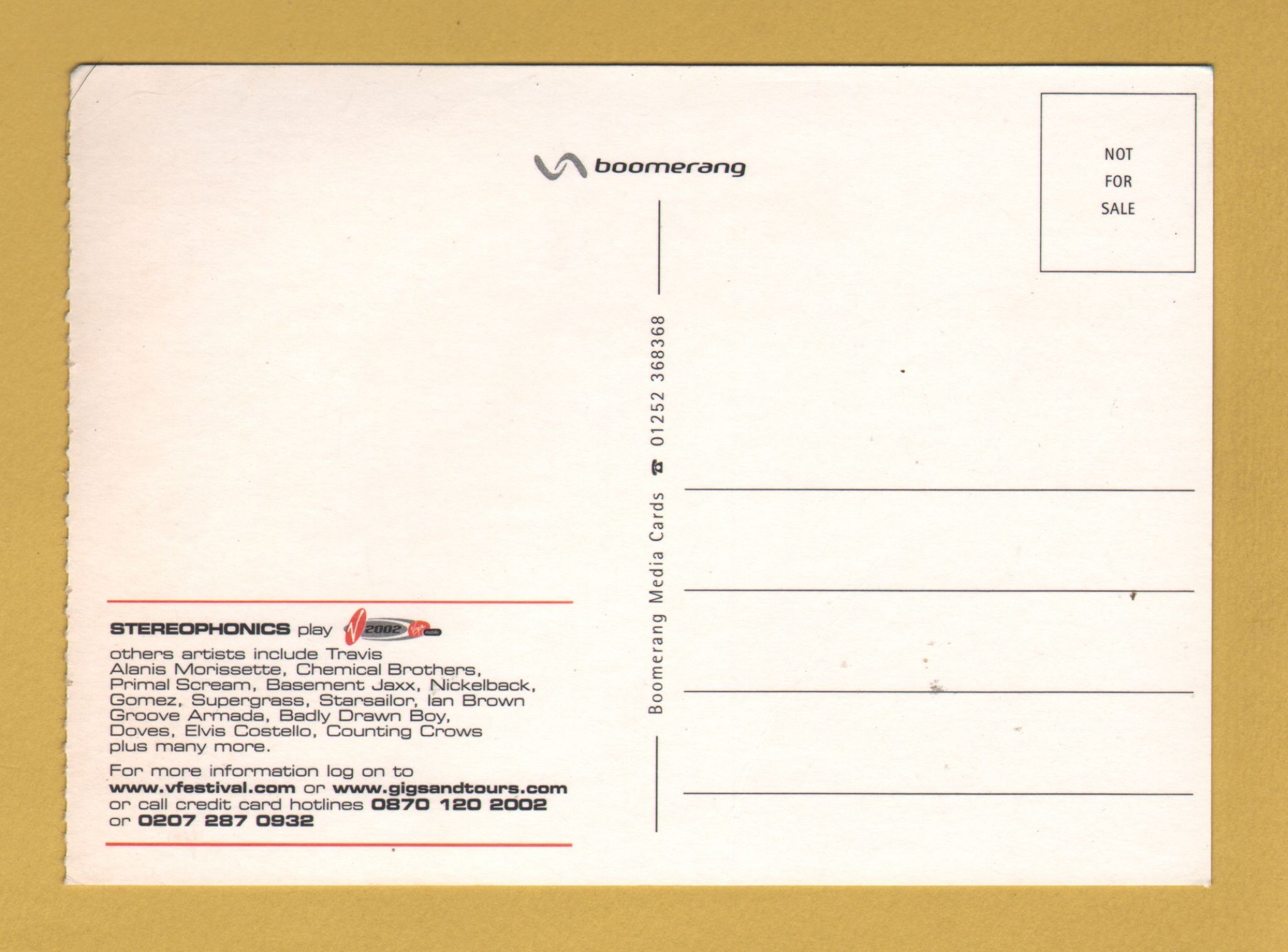 Tags: Stereophonics Play V2002, Virgin Mobile:Unused, Boomerang Media Postcard.