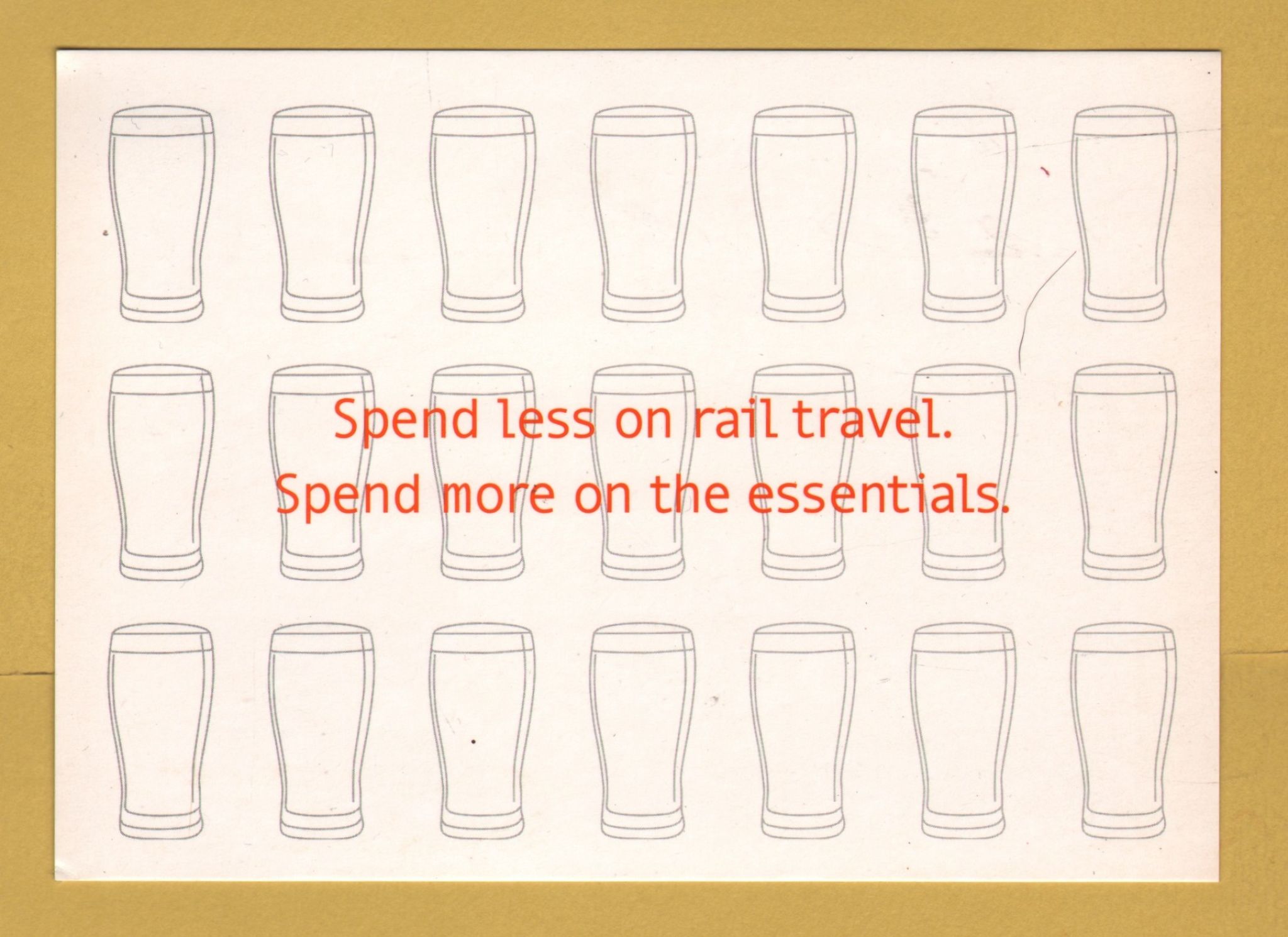 `Spend Less On Rail Travel, Spend More On The Essentials - Young Persons Railcard` - Postally Unused - Boomerang Media Postcard. `Spend Less On Rail Travel, Spend More On The Essentials - Young Persons Railcard` - Postally Unused - Boomerang Media Postcard.