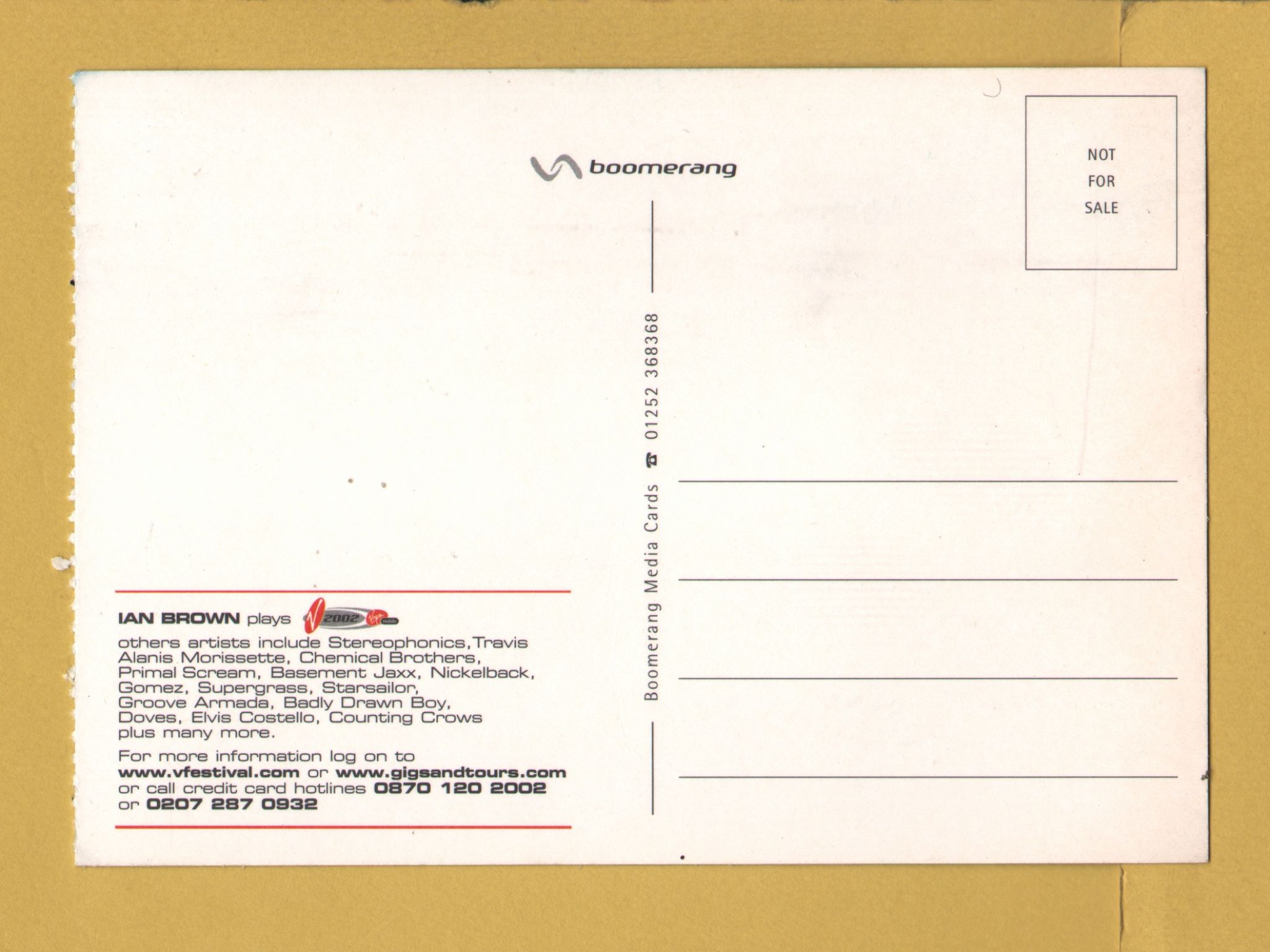 Tags: Ian Brown Plays V2002, Virgin Mobile:Unused, Boomerang Media Postcard.