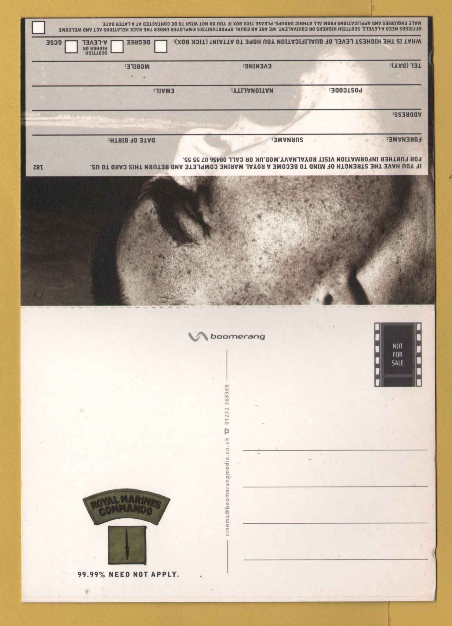 Tags: Royal Marines Commando, 99.99% Need Not Apply:Unused, Boomerang Media Postcard.