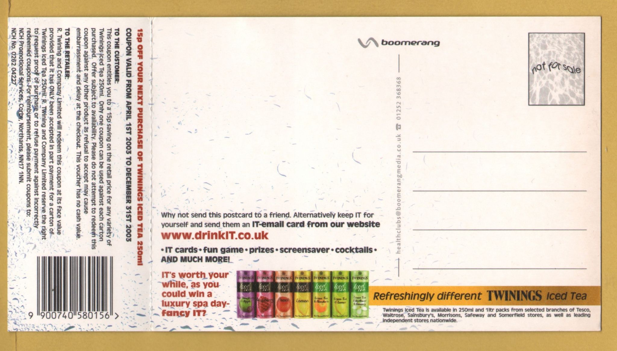 Tags: Go For It, Twinings, Ice Tea:Unused, Boomerang Media Postcard.