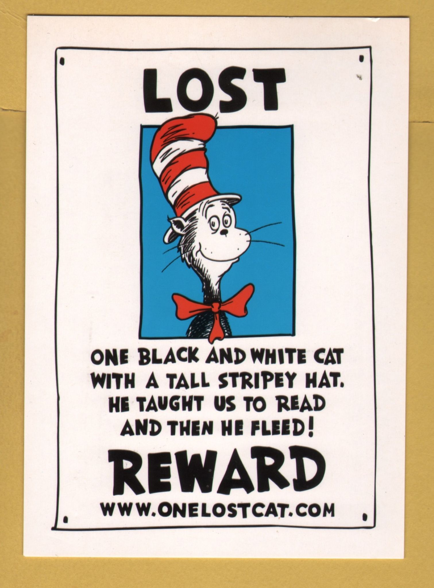 Tags: Find the Cat in the Hat, Dr Seuss, HarperCollins Publishers:Unused, Boomerang Media Postcard.