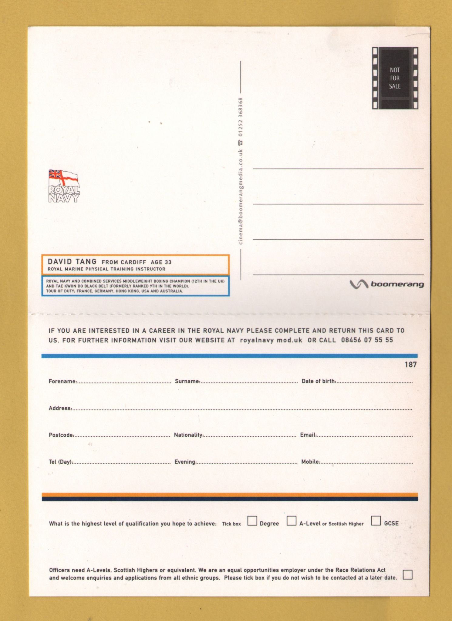 Tags: Royal Navy, The Team Works, David Tang, Recruitment:Unused, Boomerang Media Postcard.
