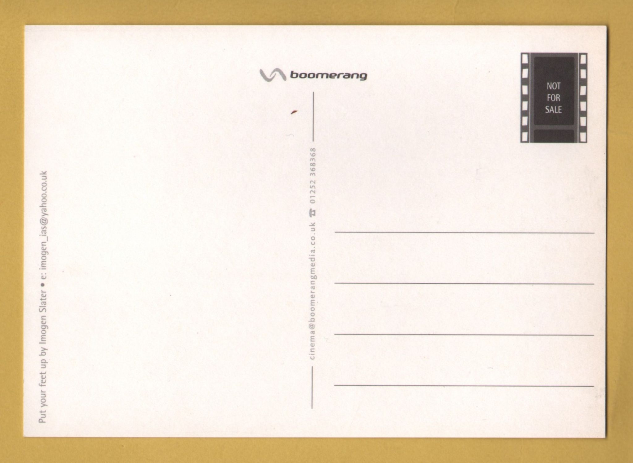 Tags: Put Your Feet Up, Imogen Slater:Unused, Boomerang Media Postcard.