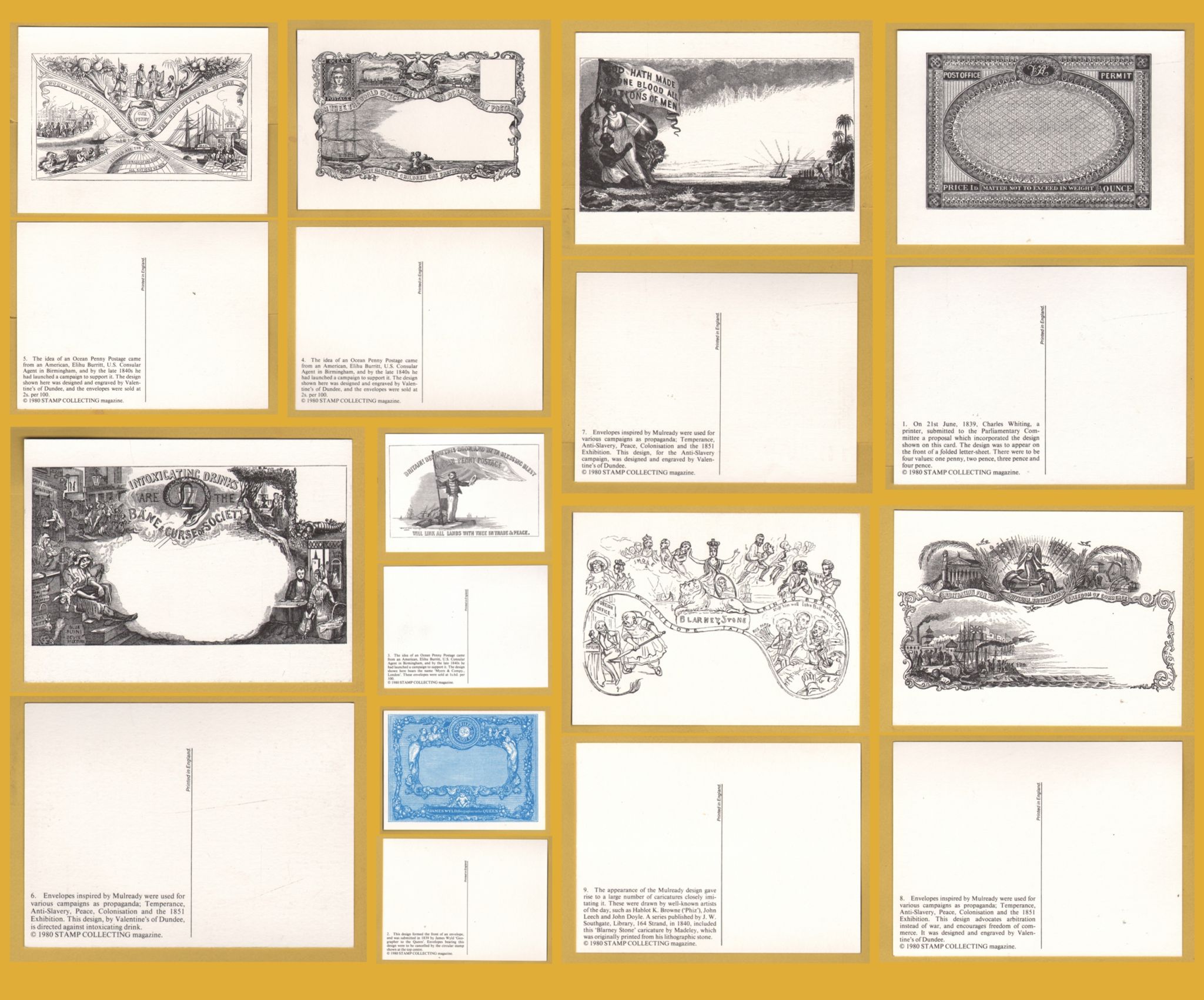`1980 Stamp Collecting Magazine - 9 Envelope Design Postcards` - Postally Unused - Stamp Collecting Magazine Postcards.