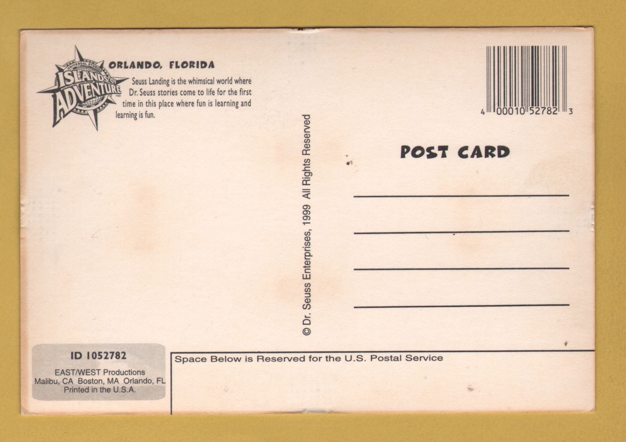 Tags: Universal Studios, Island of Adventure, Seuss Landing:Unused, Dr Seuss Postcard.