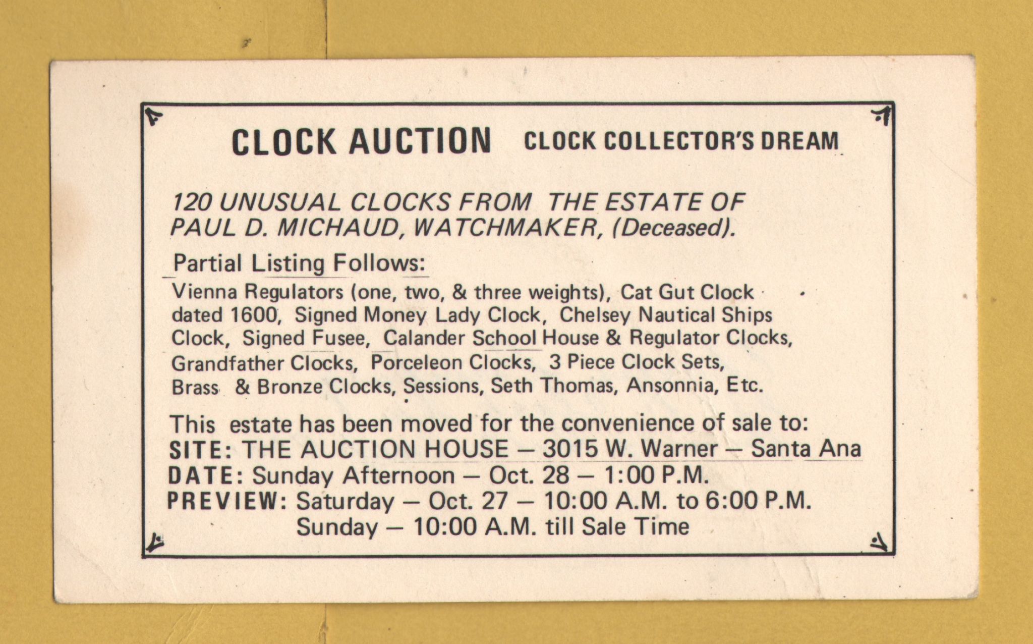 `Clock Auction - The Auction House - Santa Ana - c1973`