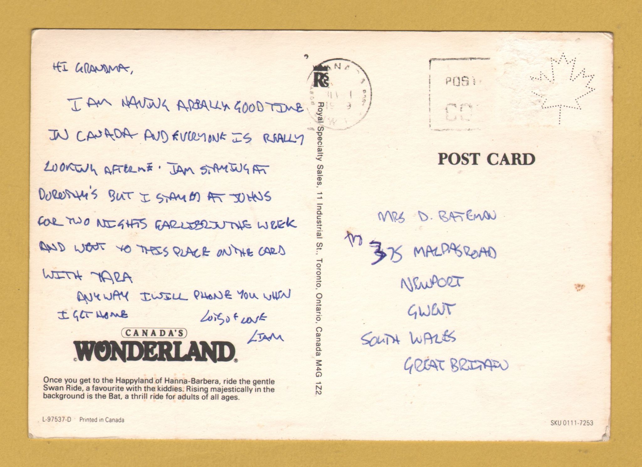 `Canada`s Wonderland - Happyland of Hanna-Barbera` - Postally Used - Royal Specialty Postcard.
