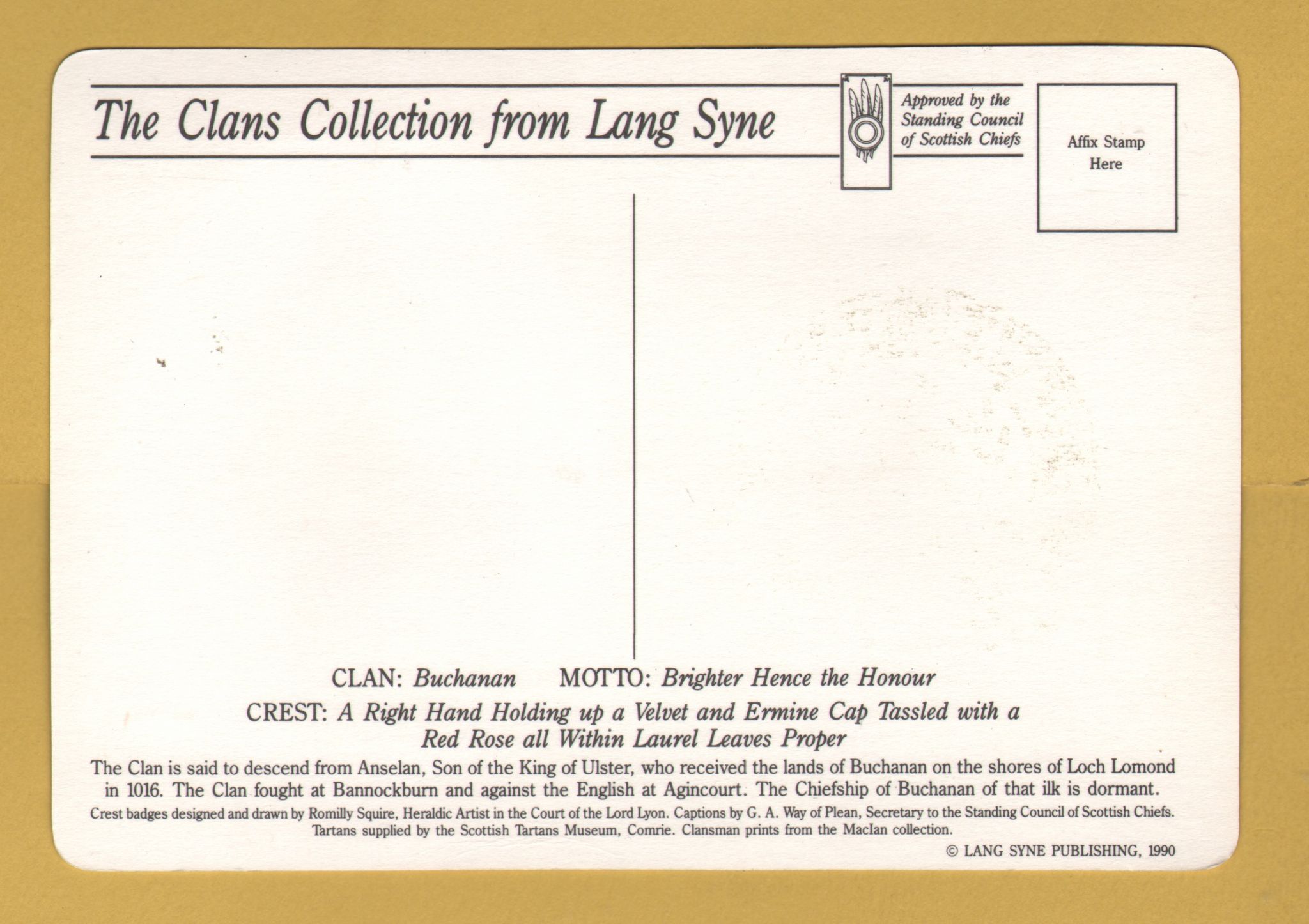 Tags: The Clans Collection from Lang Syne, Clan Buchanan, 1990`:Unused, Lang Syne Postcard.