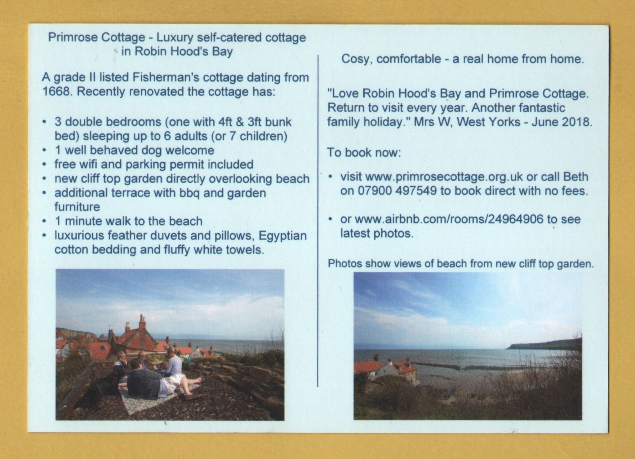 Tags: Primrose Cottage, Robin Hood`s Bay, Whitby:Unused, Postcard.
