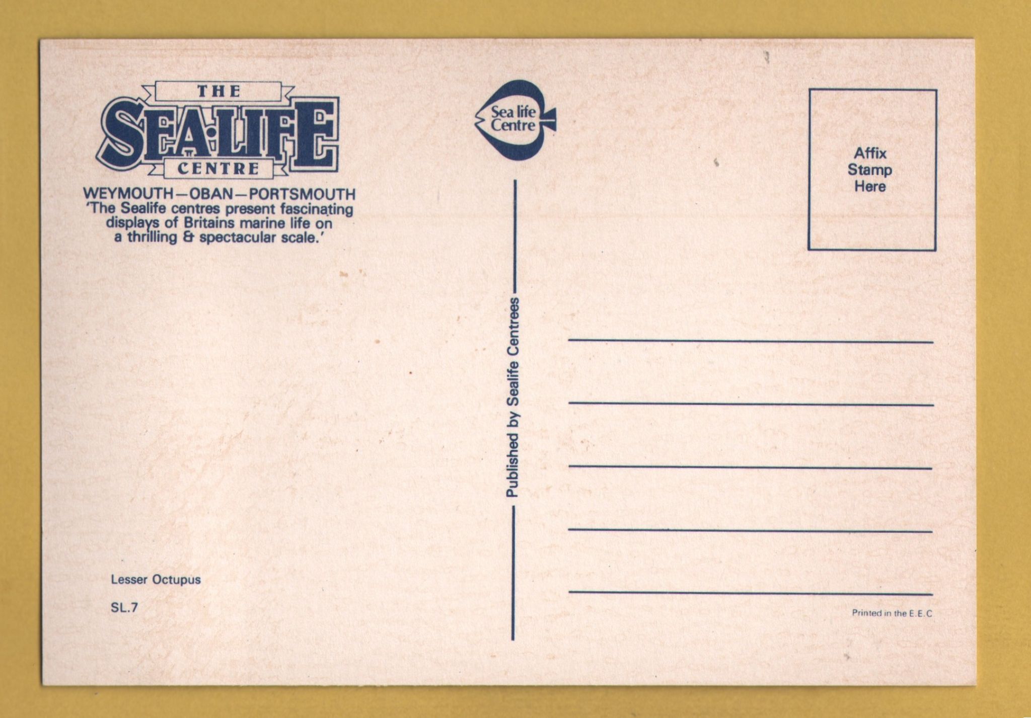 Tags: The SEA LIFE Centre, Weymouth, Oban, Portsmouth:Unused, Sealife Centrees Postcard.
