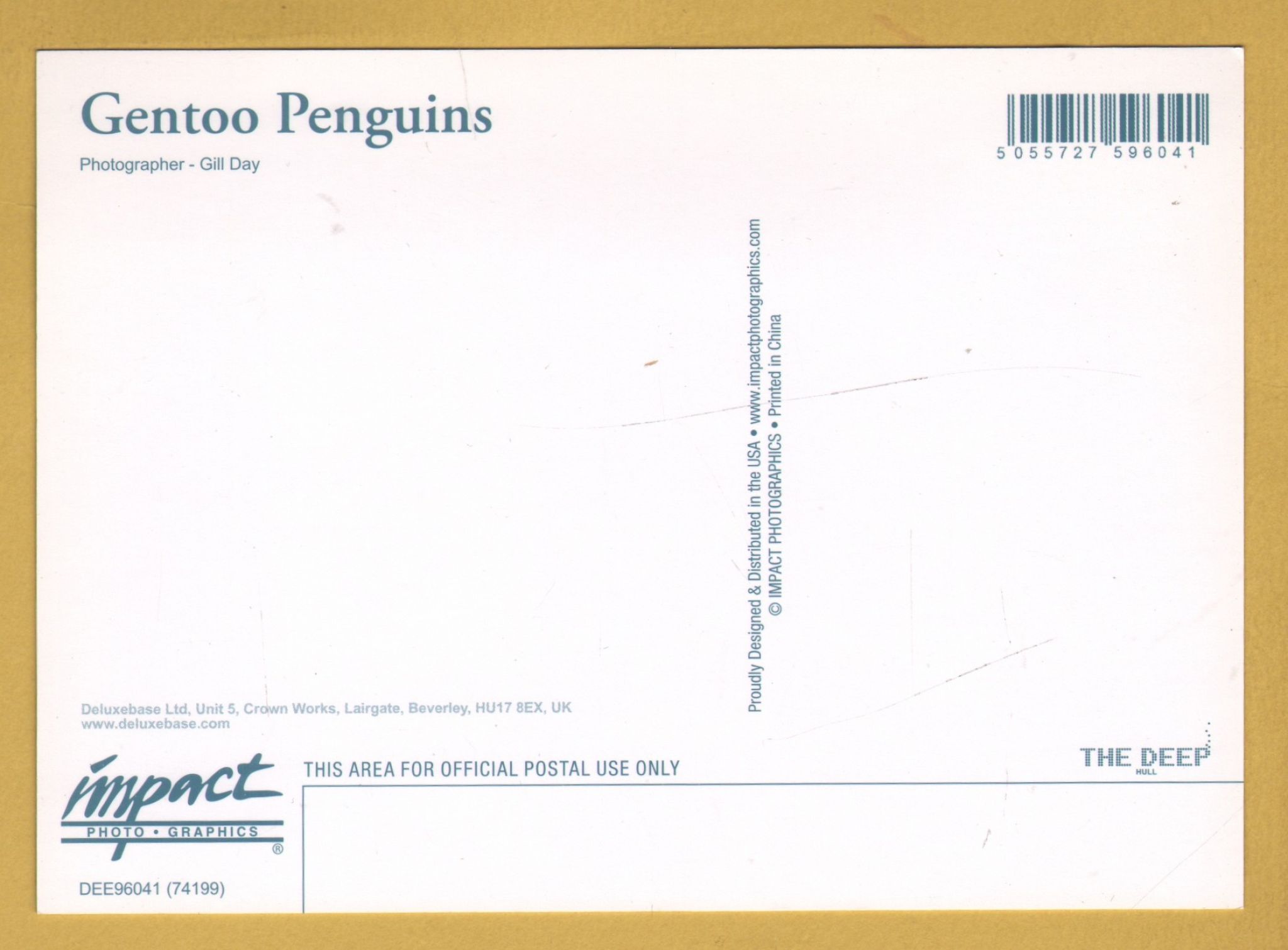 `The Deep - Gentoo Penguins`- Postally Unused - The Deep Postcard. `The Deep - Gentoo Penguins`- Postally Unused - The Deep Postcard.