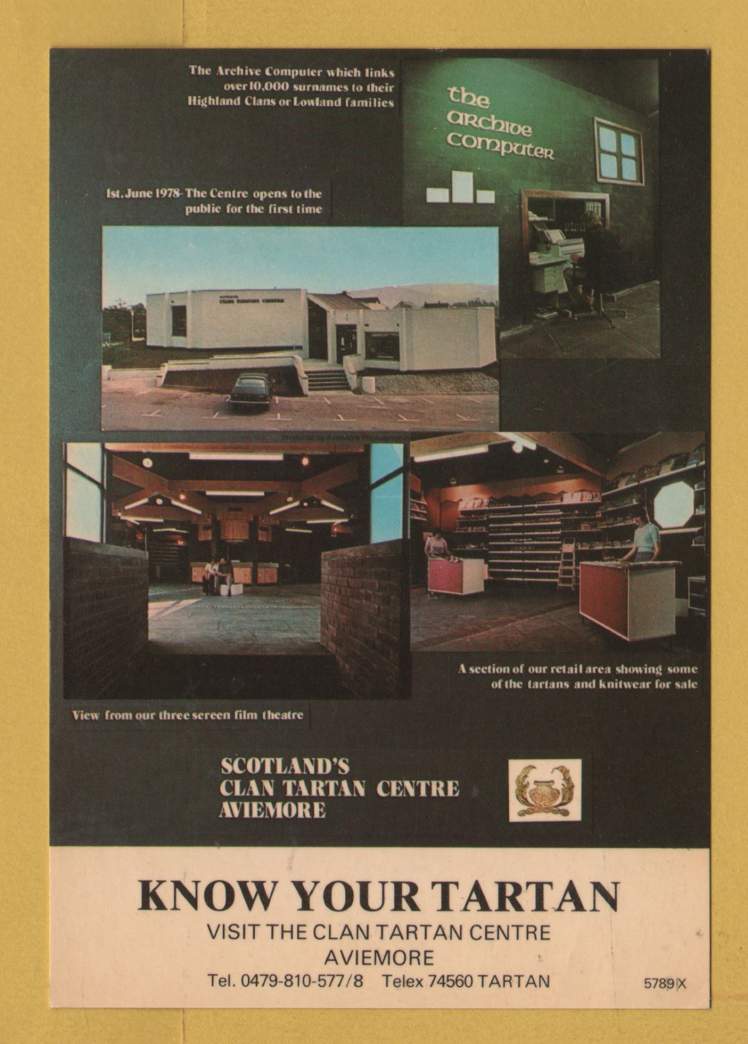 `Know Your Tartan - The Clan Tartan Centre, Aviemore`- Postally Unused - Whiteholme Postcard. `Know Your Tartan - The Clan Tartan Centre, Aviemore`- Postally Unused - Whiteholme Postcard.