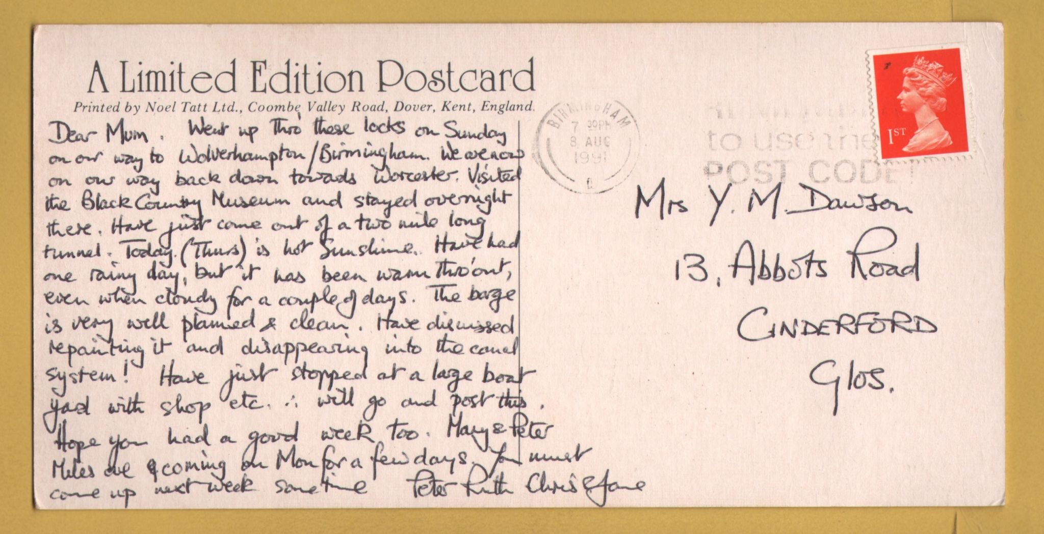`A Limited Edition Postcard - Bratch Locks - Staffs and Worcs Canal` - Postally Used-1991 - Noel Tatt Postcard. `A Limited Edition Postcard - Bratch Locks - Staffs and Worcs Canal` - Postally Used-1991 - Noel Tatt Postcard.