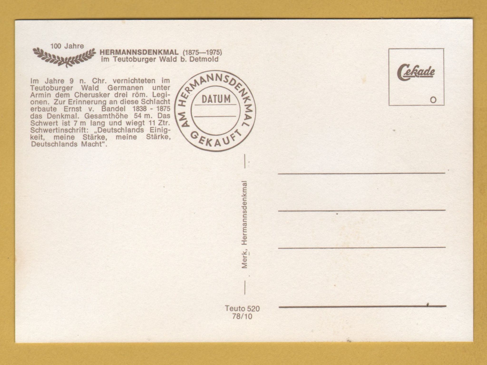 `100 years - Hermann Monument (1875-1975) - Teutoburg Forest nr Detmold`