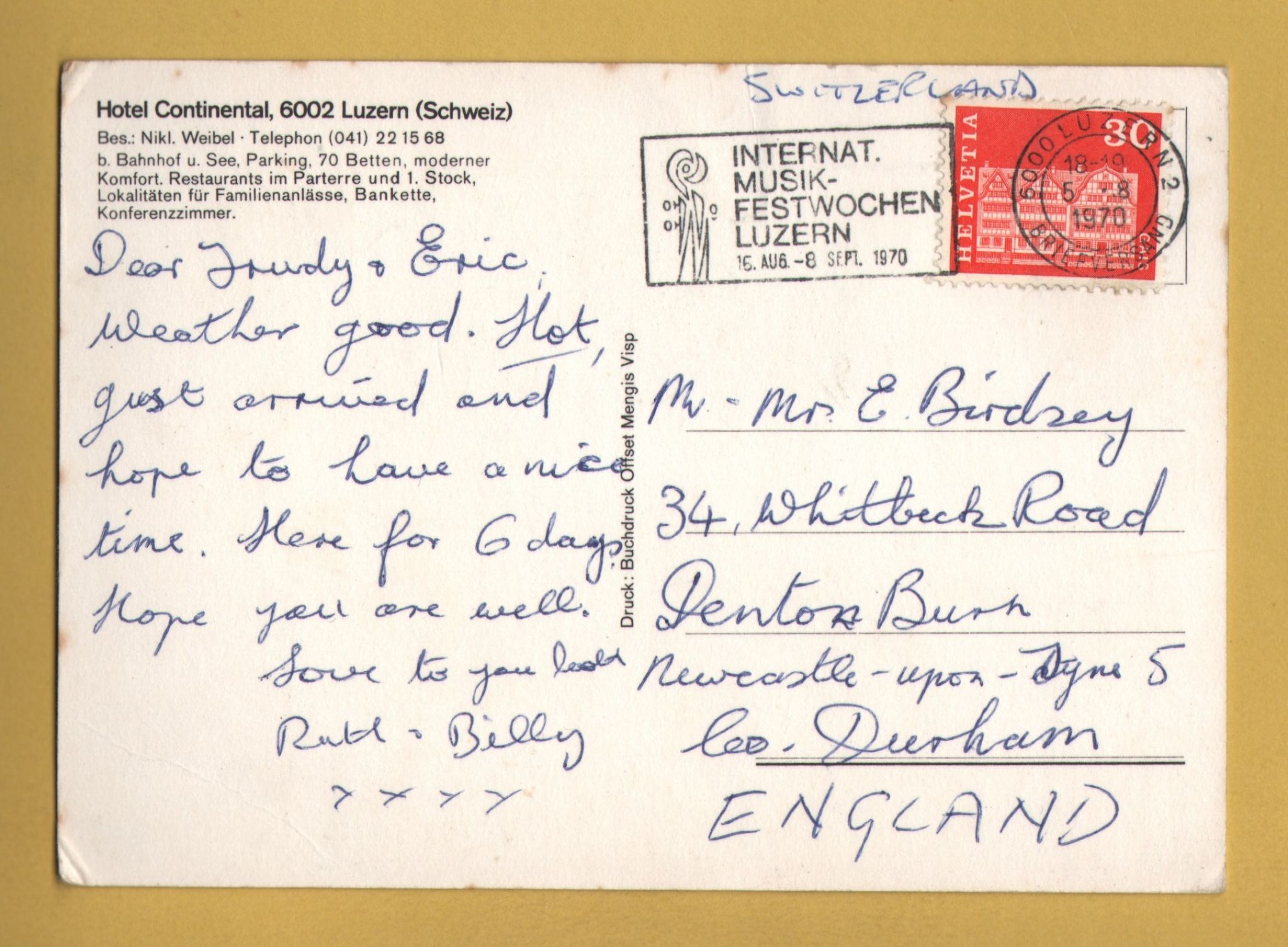 `Hotel Continental, 6002 Lucerne (Switzerland)`- Postally Used-1970 - Hotel Postcard.