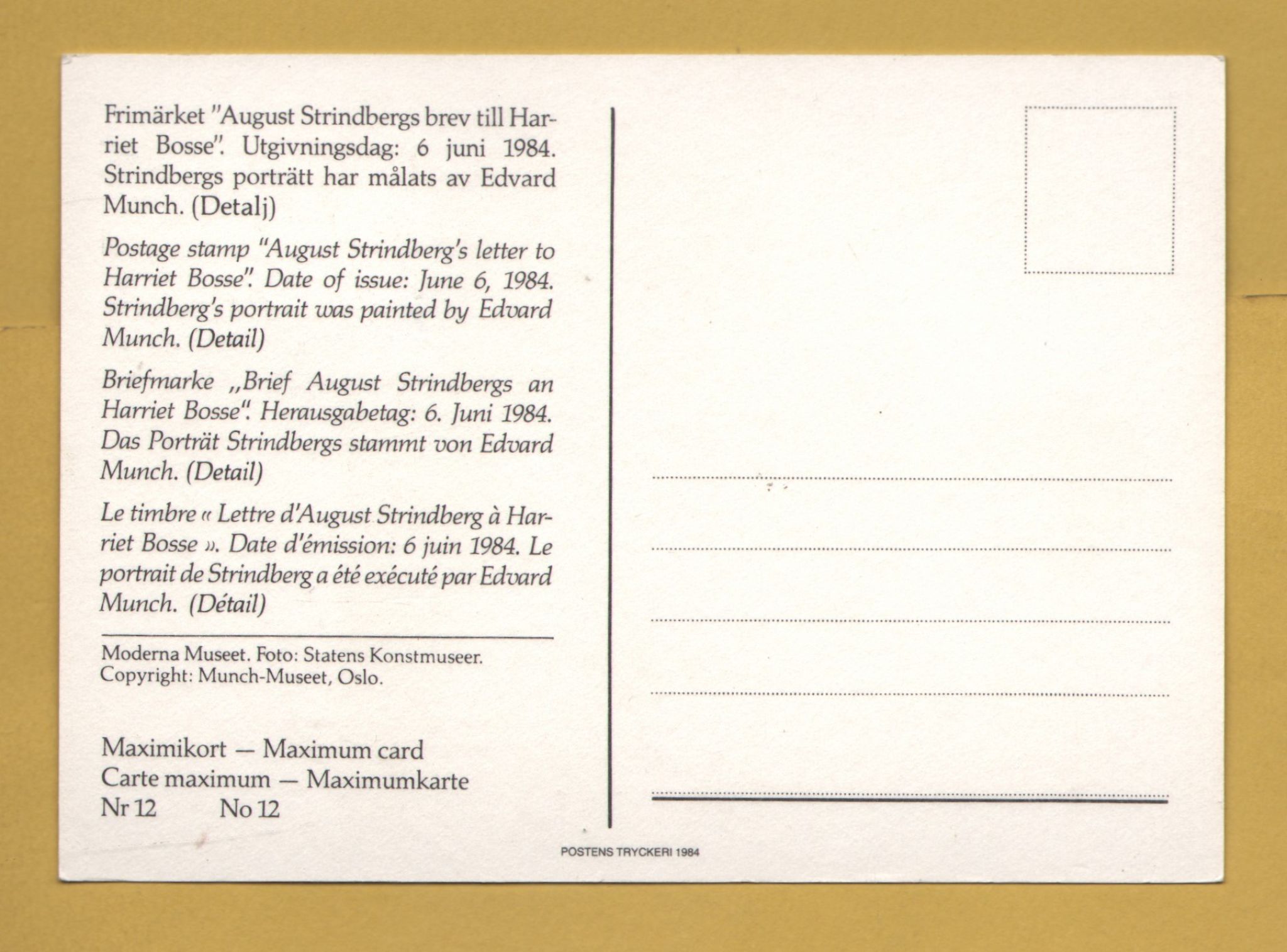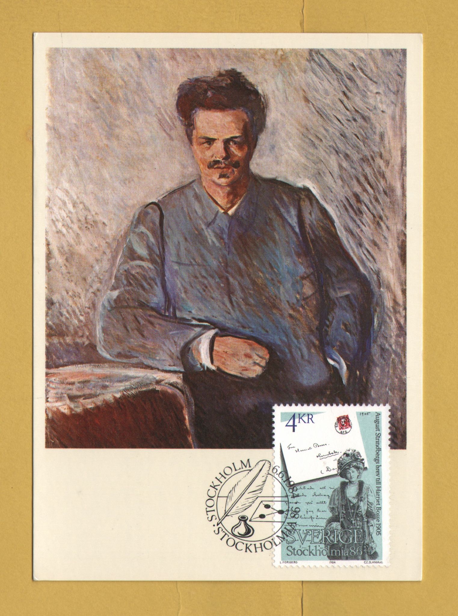 `Swedish - Maximum Card - `August Strindberg`s Letter to Harriet Bosse` - Date of Issue 6th June 1984`