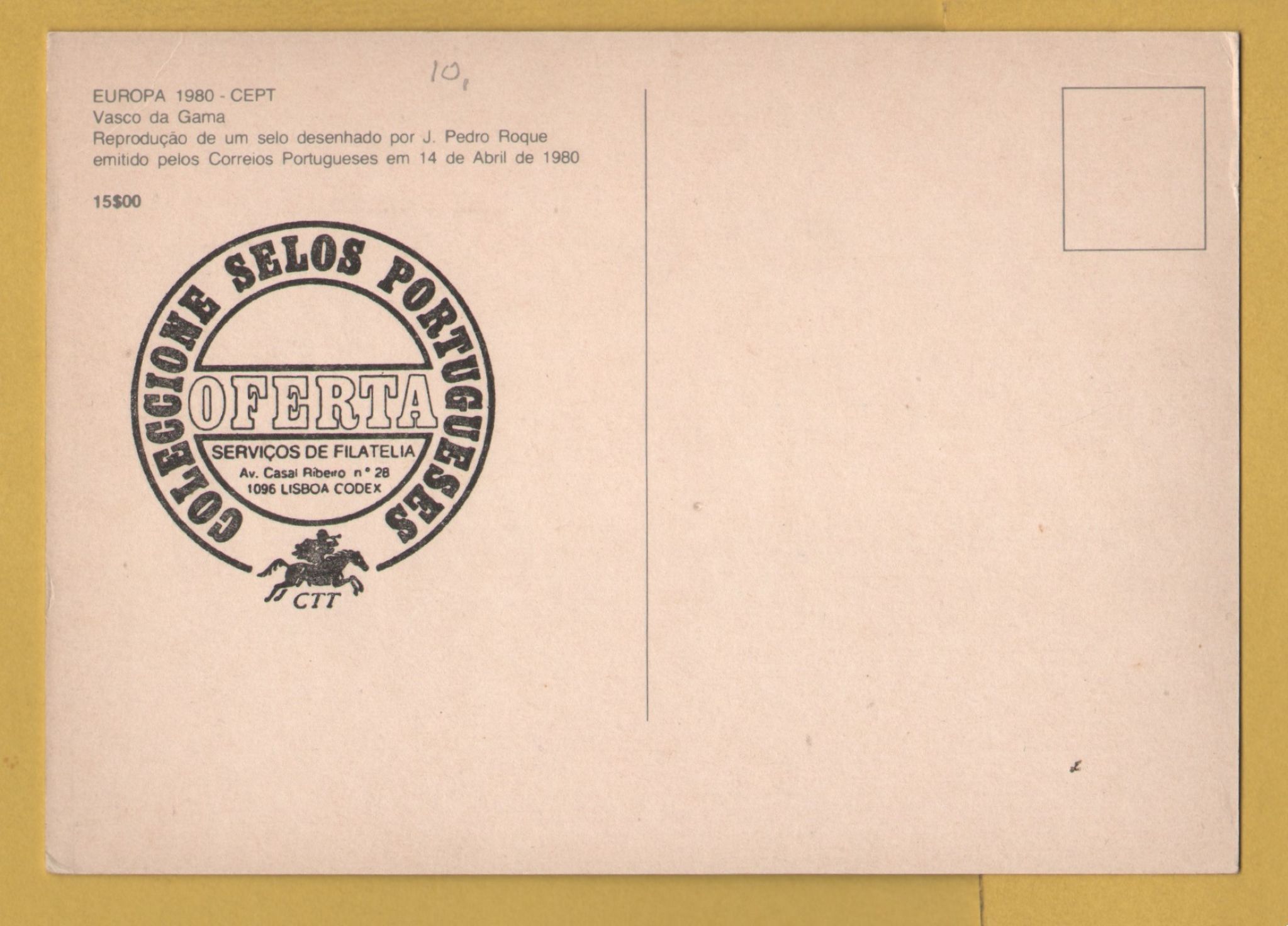 Tags: Portugal, Europa 1980, Reproduced 60 escudo Vasco Da Gama Stamp:Unused, CTT Postcard.