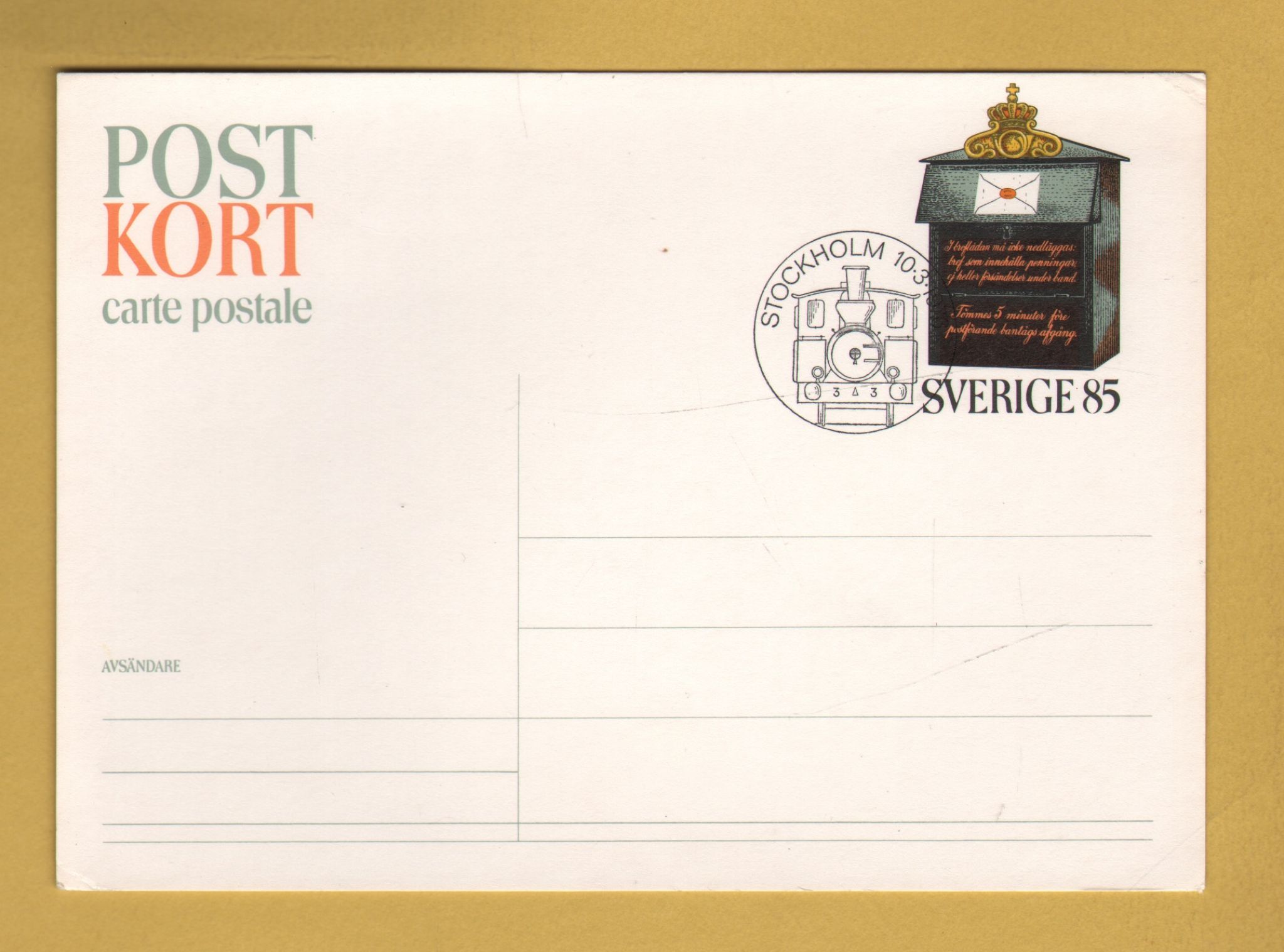 `Sweden - Pre-Printed 85 Ore Postcard`