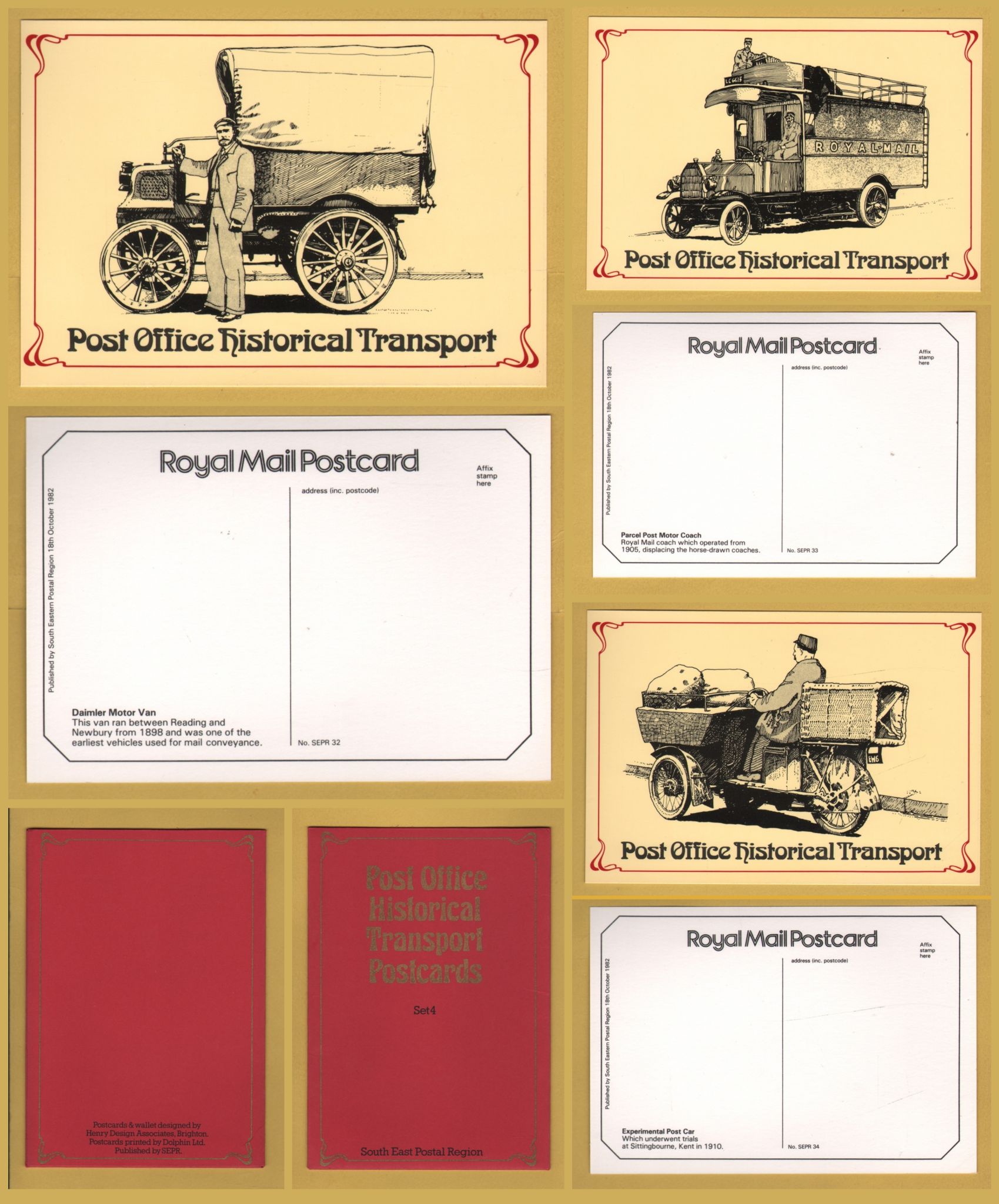 `Post Office Historical Transport - 3 x Postcards - Set 4` - Postally Unused - South Eastern Postal Region Postcards.