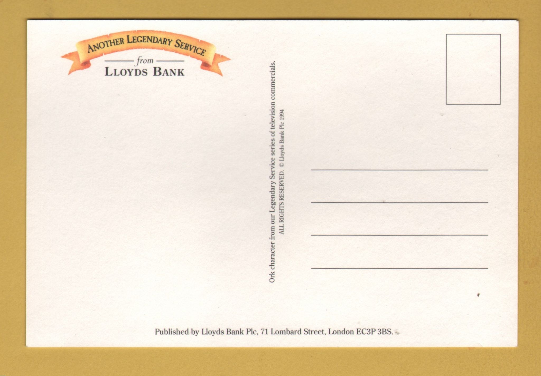 Tags: Another Legendary Service, Lloyd`s Bank, ORK Character:Unused, Postcard.