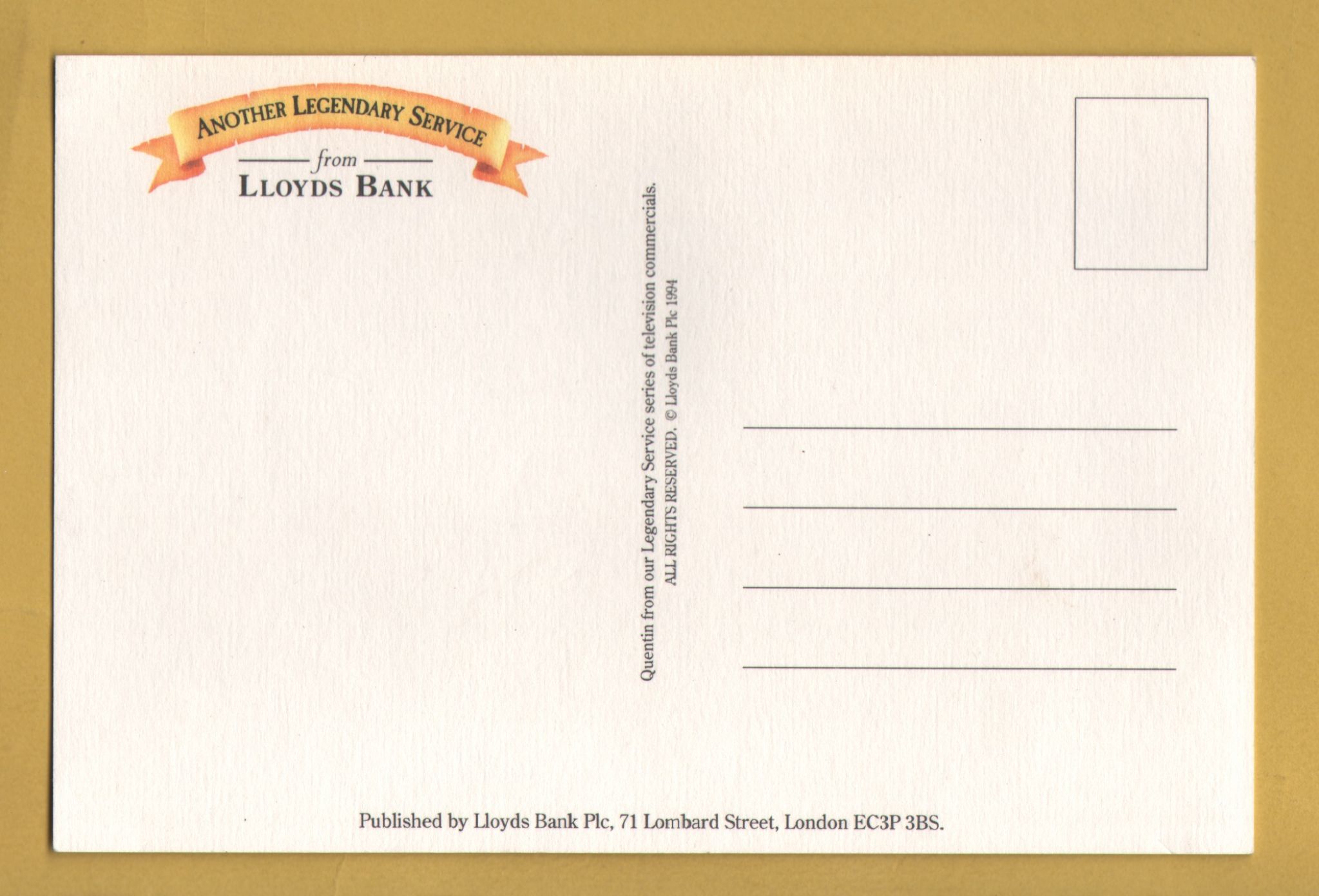 `Another Legendary Service from Lloyd`s Bank - Quentin`- Postally Unused - Lloyd`s Bank Postcard.