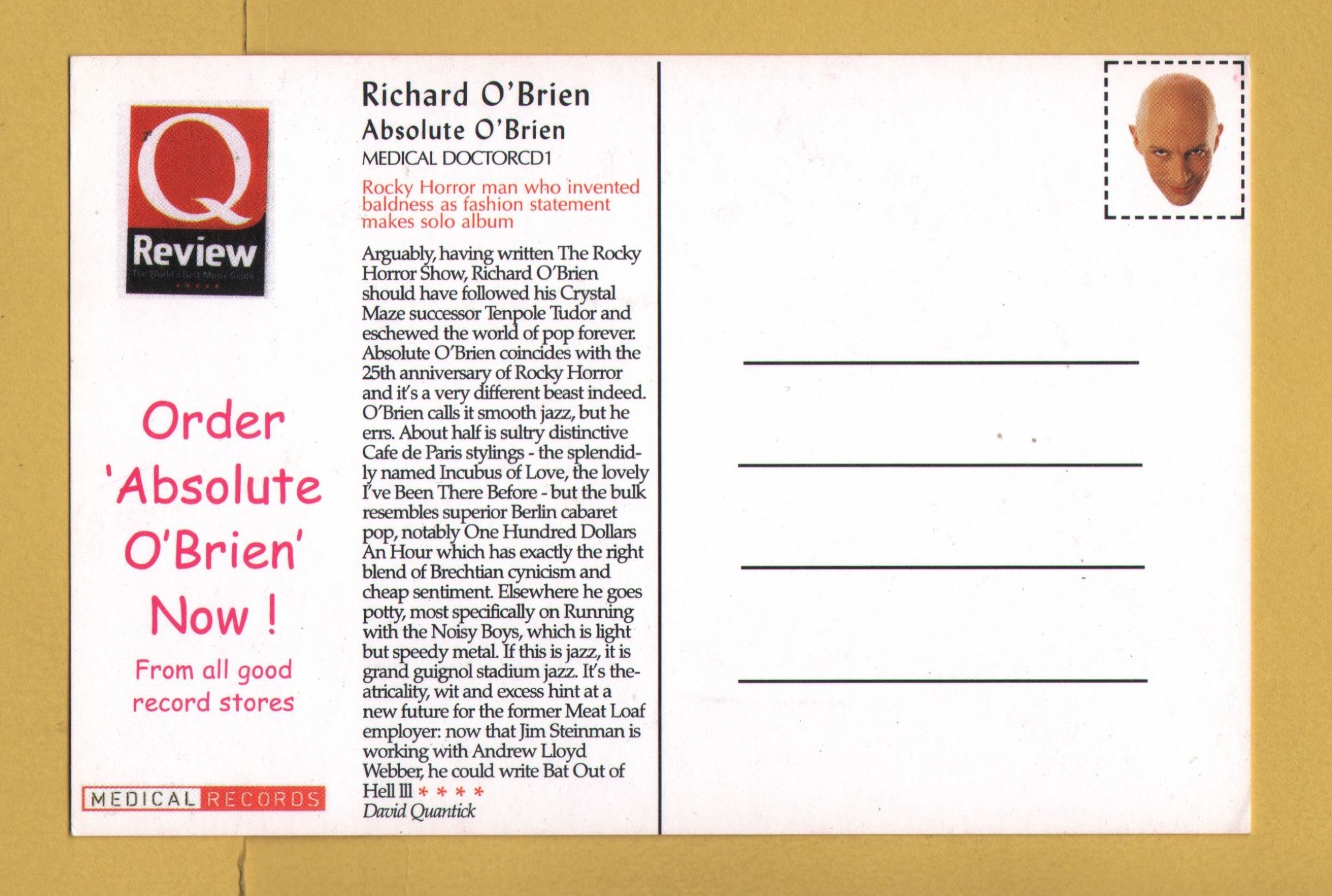 `Richard O`Brien - Absolute O`Brien - Medical DoctorCD1`- Postally Unused - Medical Records Postcard. `Richard O`Brien - Absolute O`Brien - Medical DoctorCD1`- Postally Unused - Medical Records Postcard.