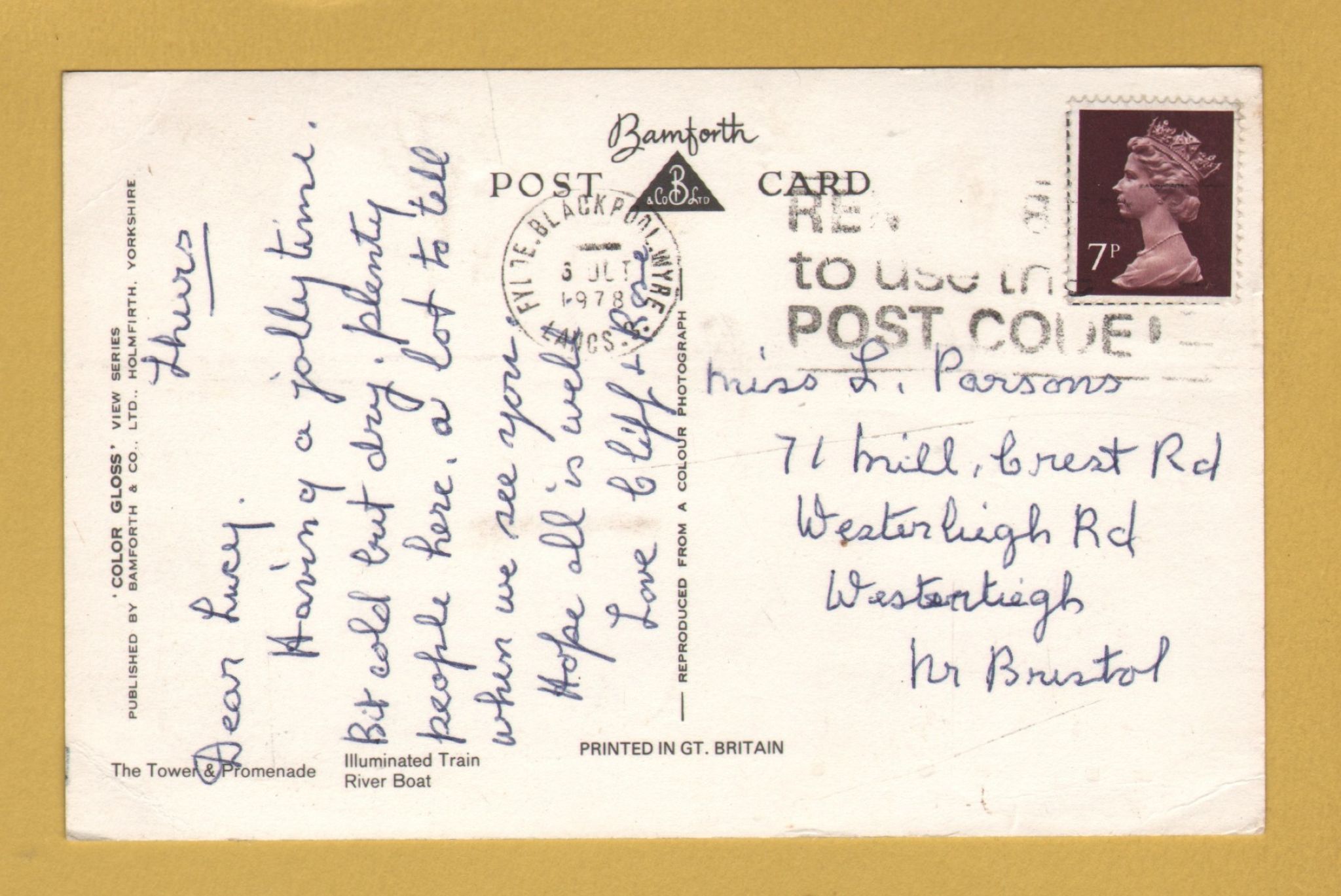 `BLACKPOOL ILLUMINATIONS`- Postally Used-1978 - Bamforth Postcard.