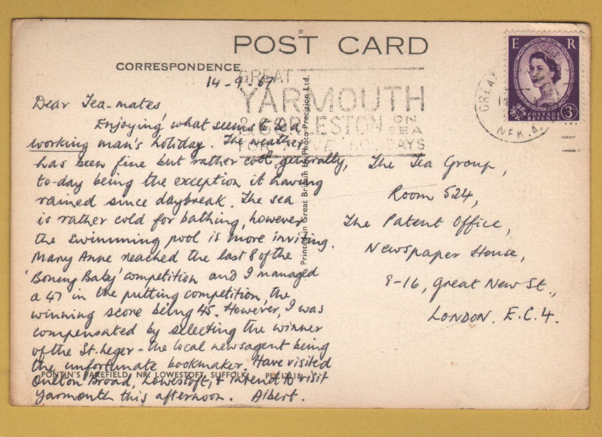 `Greetings from Pontin`s at Pakefield, Suffolk`- Postally Used-1967 - Photo Precision Postcard.