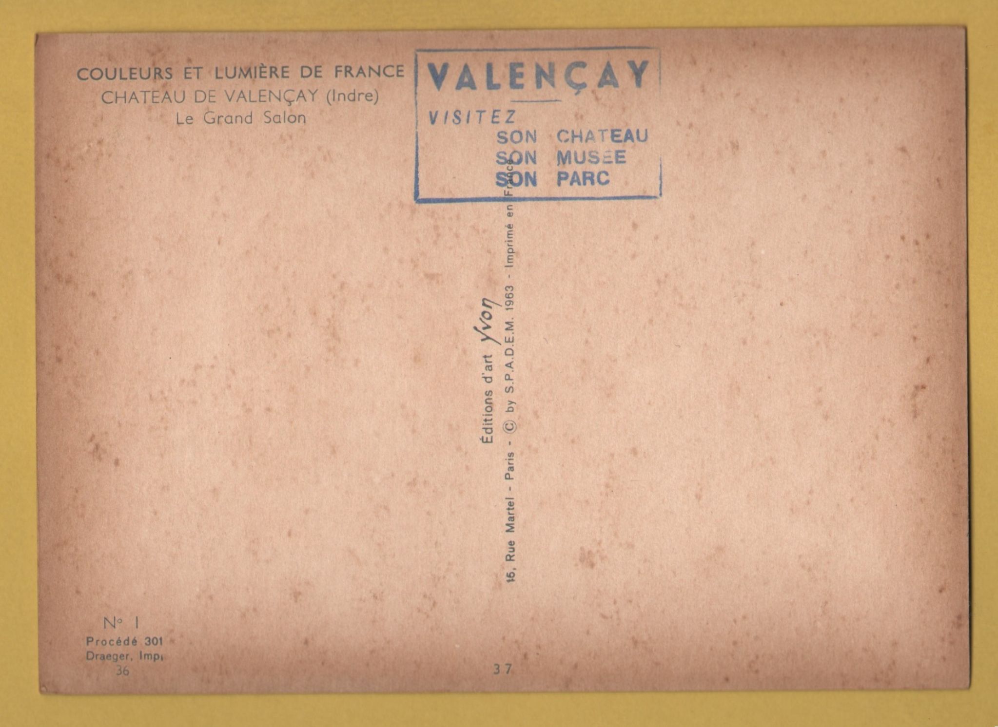 Tags: Colors, Lights of France, VALENCAY CASTLE (Indre), The Grand Salon:Unused, YVON Postcard.
