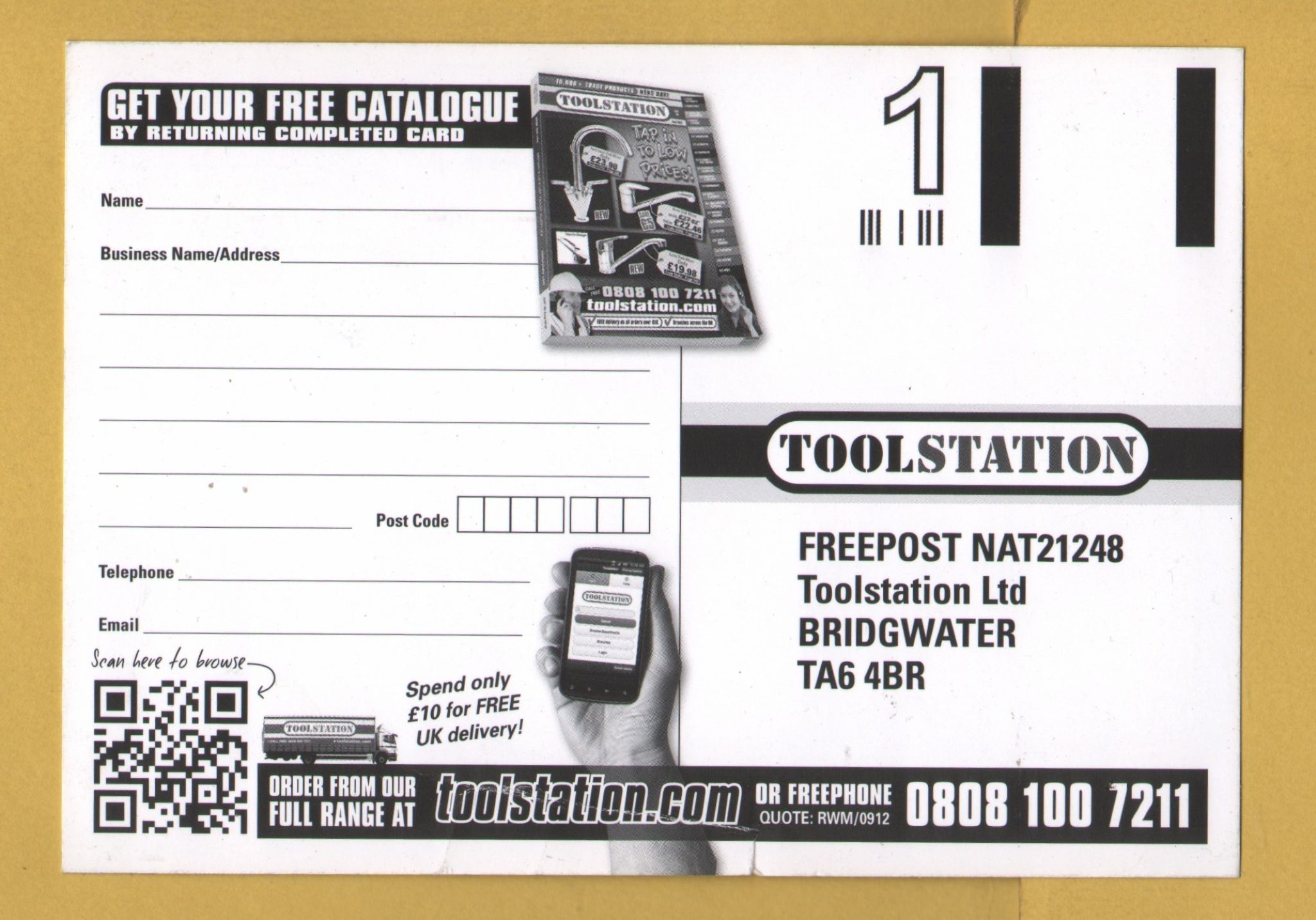 `TOOL STATION - Free Catalogue Offer`- Postally Unused - Tool Station Postcard. `TOOL STATION - Free Catalogue Offer`- Postally Unused - Tool Station Postcard.