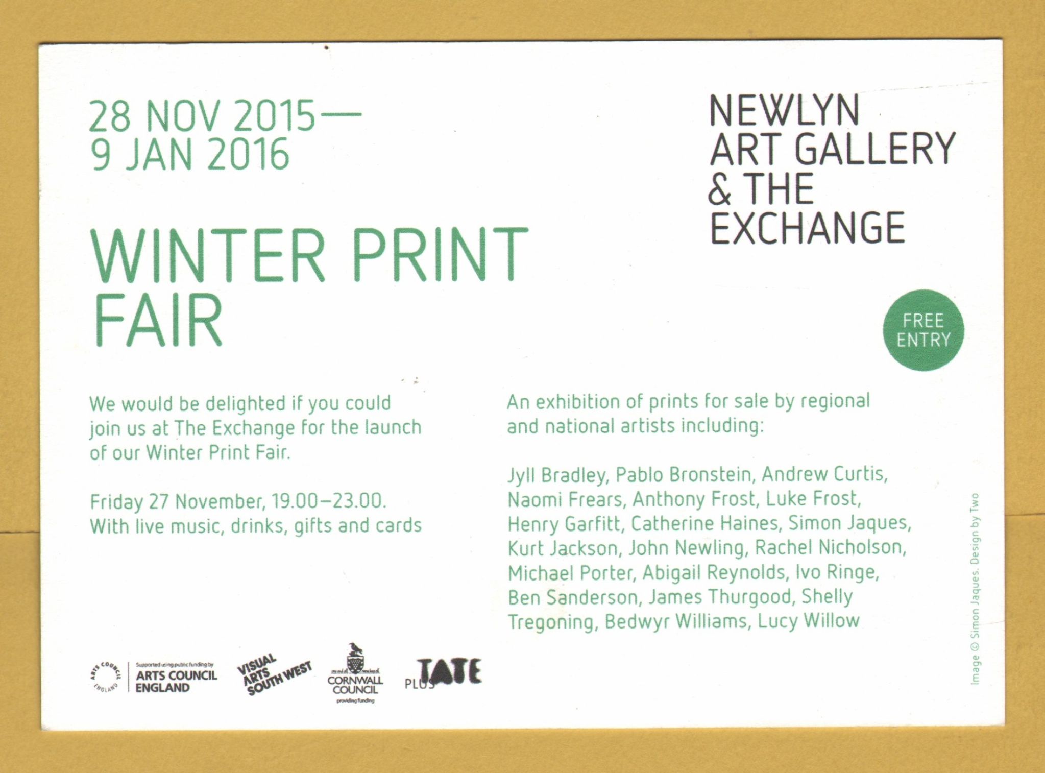 Tags: Newlyn Art Gallery, The Exchange, Winter Print Fair, 2015/16:Unused, Gallery Postcard.