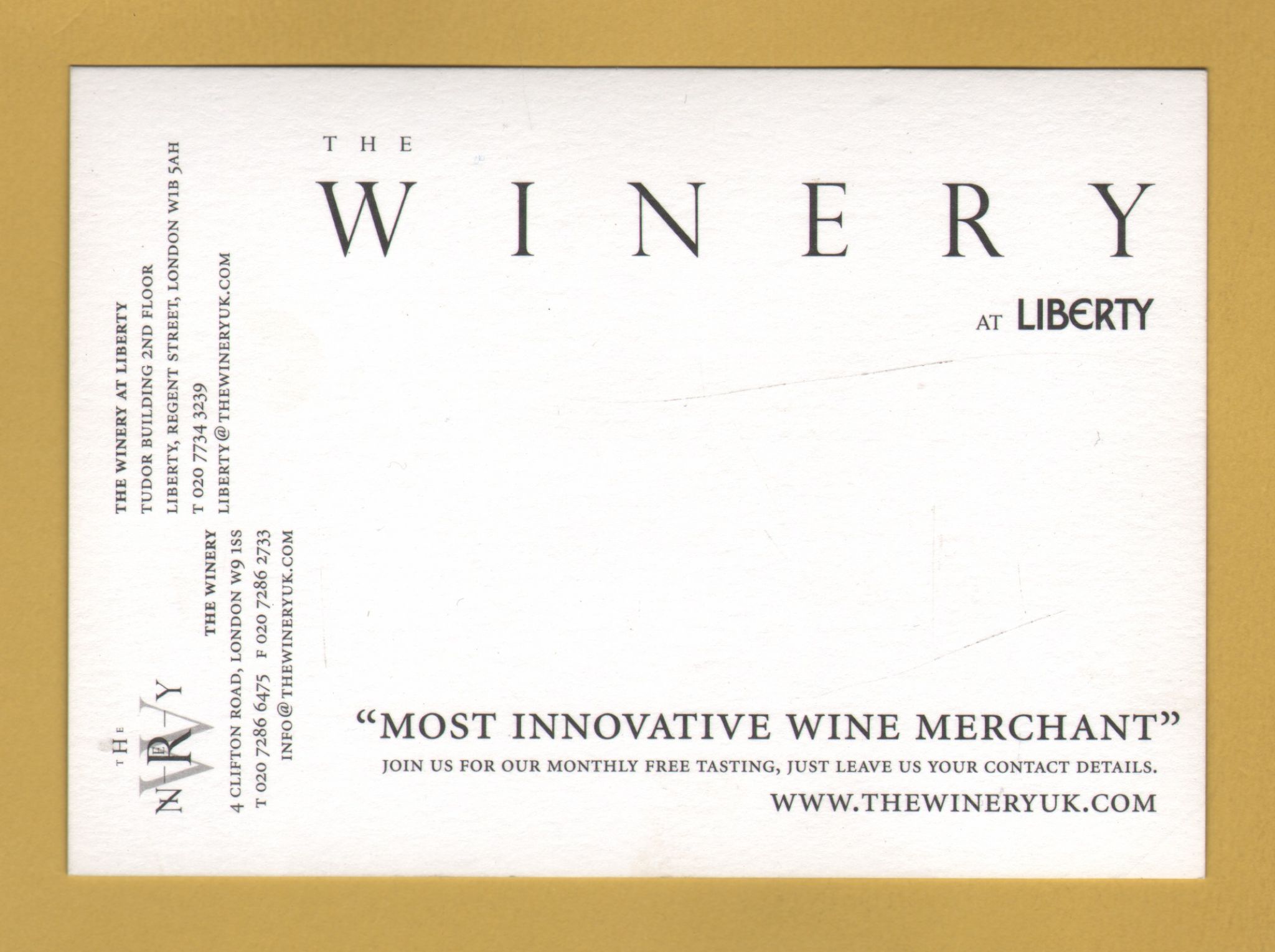 Tags: THE WINERY at Liberty, Most Innovative Wine Merchant:Unused, Postcard.