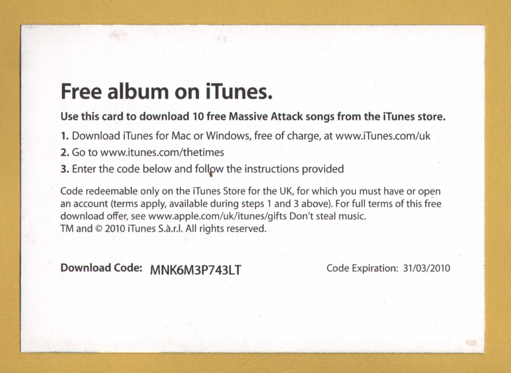 `THE TIMES - Free Albums on iTunes` - Code Expired 2010