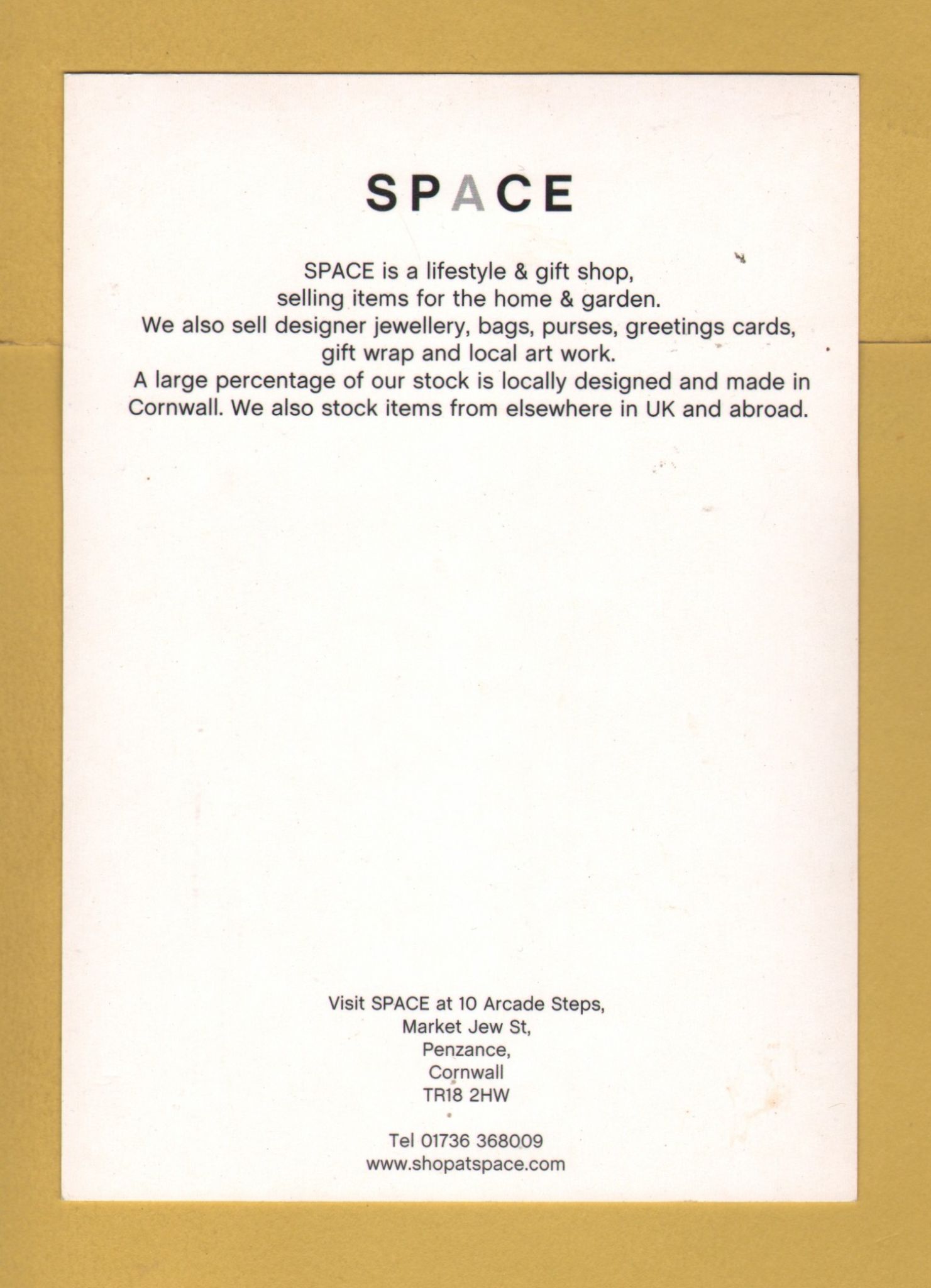 Tags: SPACE, Lifestyle, Gift Shop, Penzance:Unused, Shop Postcard.