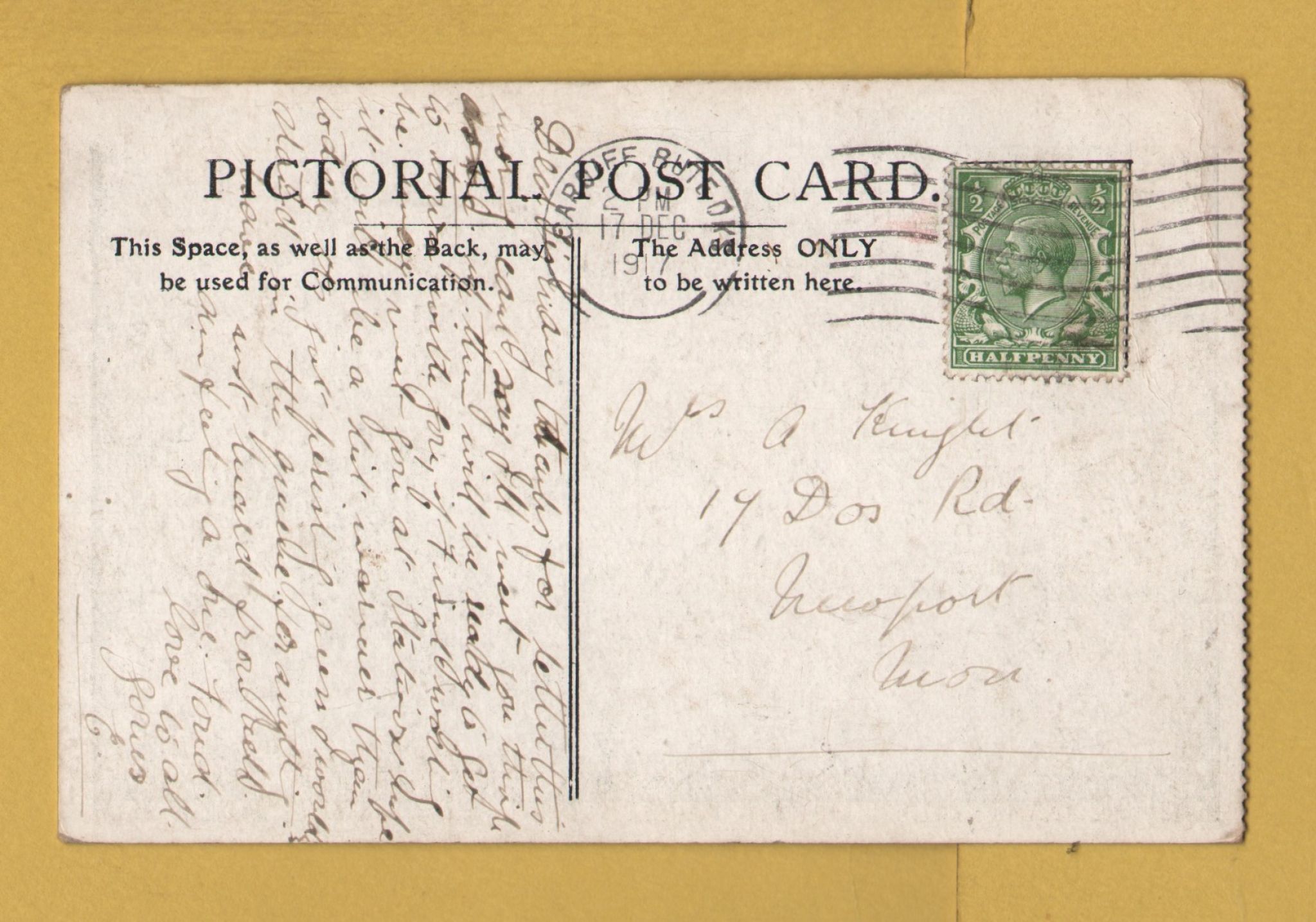 further detail & condition of postcard.