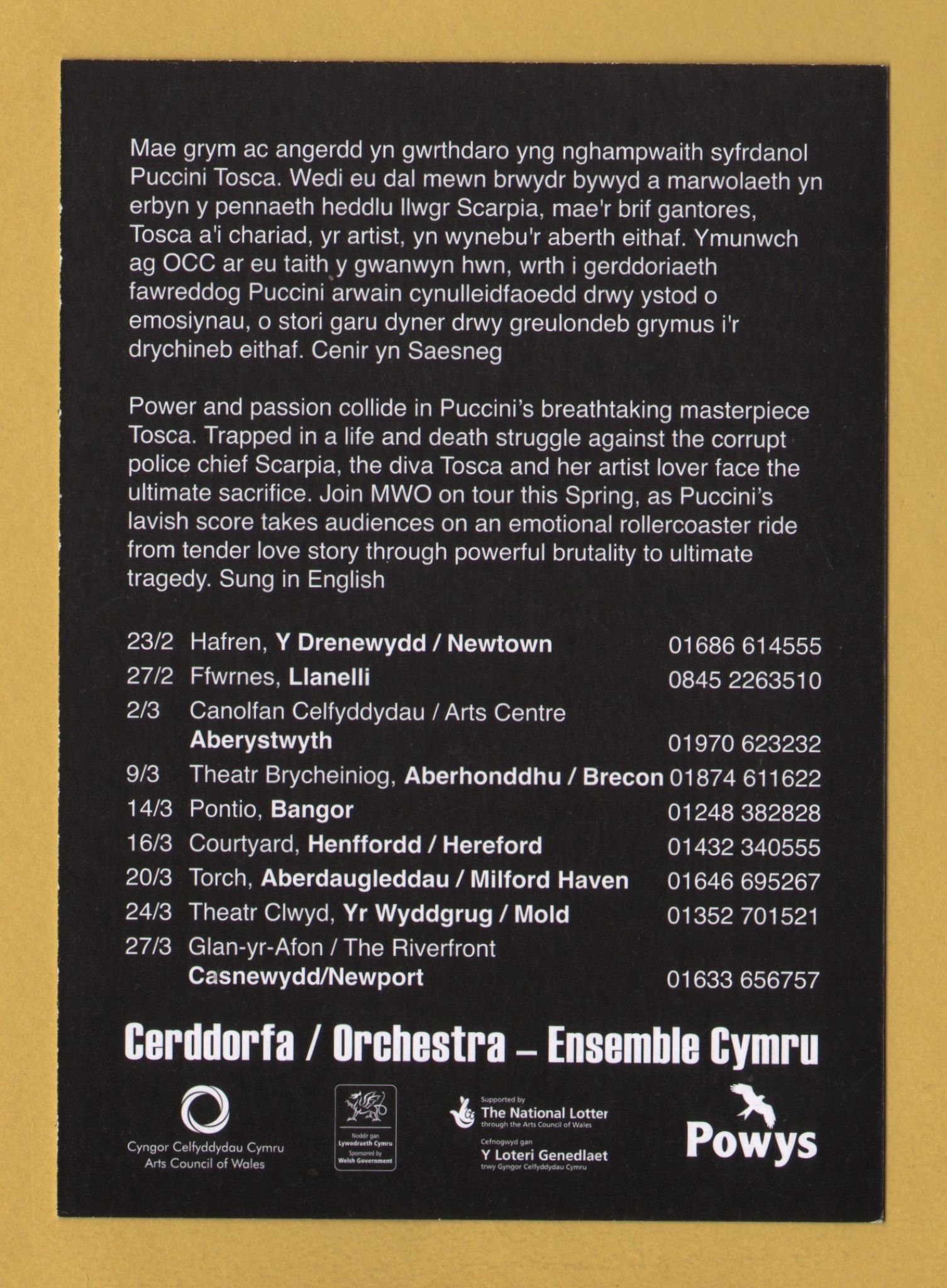 Tags: TOSCA, Puccini, Mid Wales Opera, Spring Tour 2019:Unused, Company Postcard.