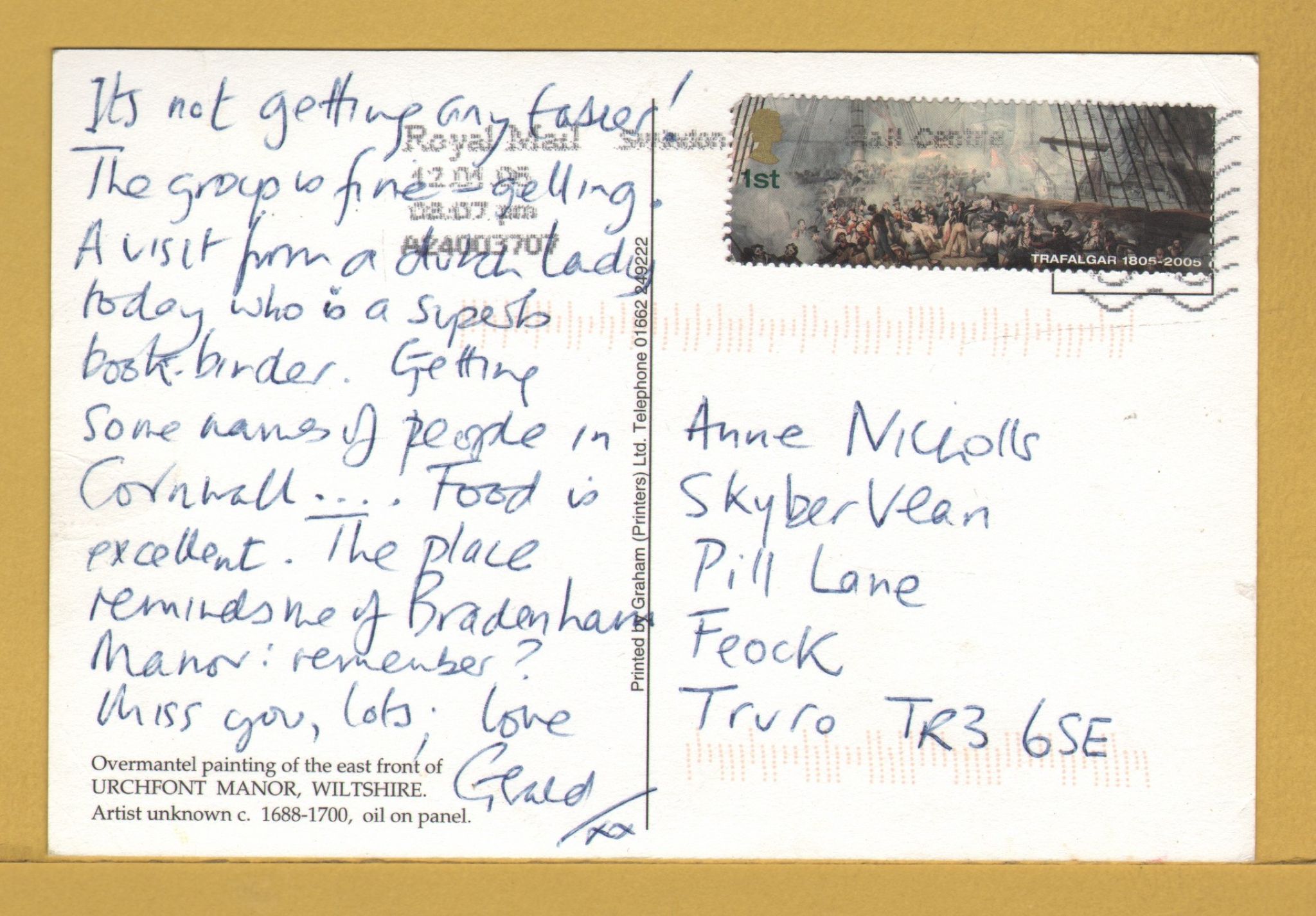 Tags: Urchfront Manor, Wiltshire, Artist Unknown:Postally Used, 2005, Graham Ltd Postcard.
