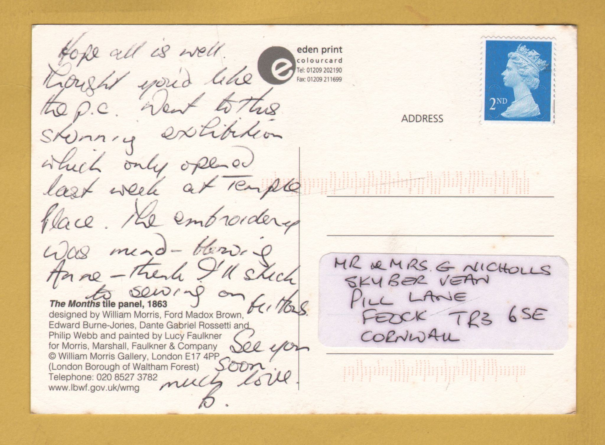 `The Months Tile Panel 1863 - Designed by Various, Painted by Lucy Faulkner` - Postally Used - Eden Print Postcard.