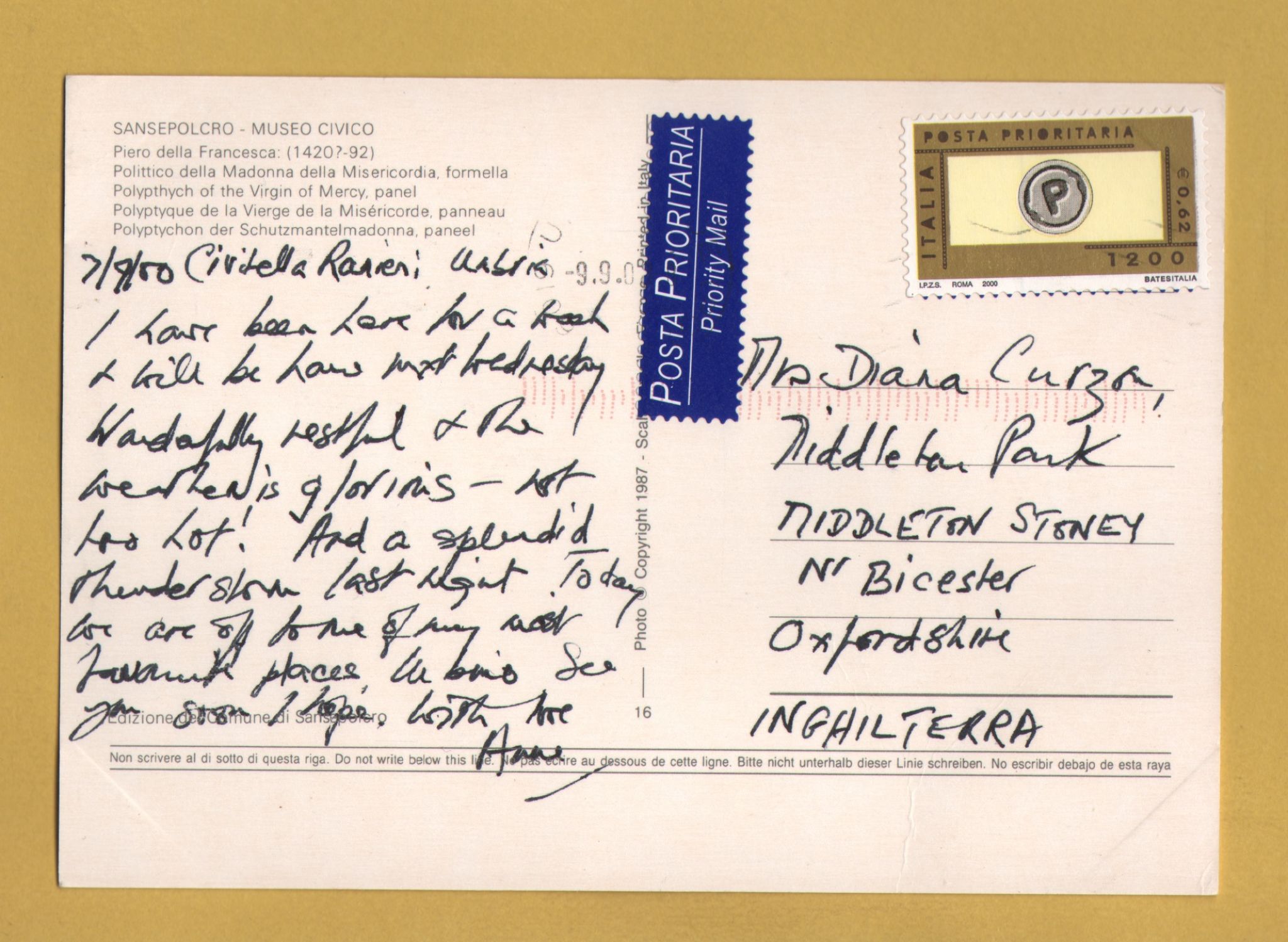 `Sansepolcro, Civic Museum - Polyptych of the Virgin of Mercy, panel` - Postally Used-2000 - Museum Postcard.