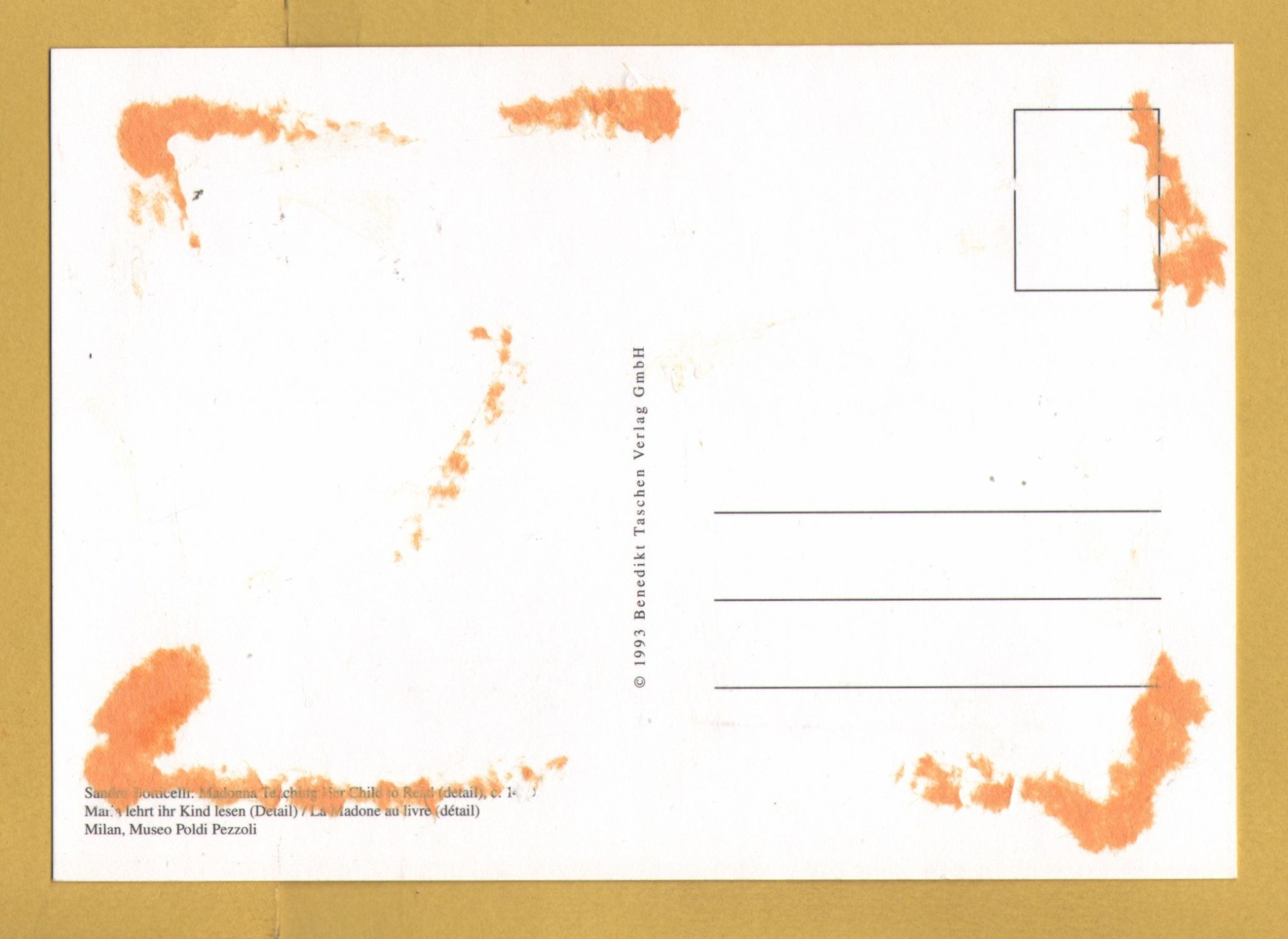 Tags: Milan, Museum of Poldi Pezzoli, Madonna Teaching Her Child to Read.Botticelli:Unused, Benediki Taschen Postcard.