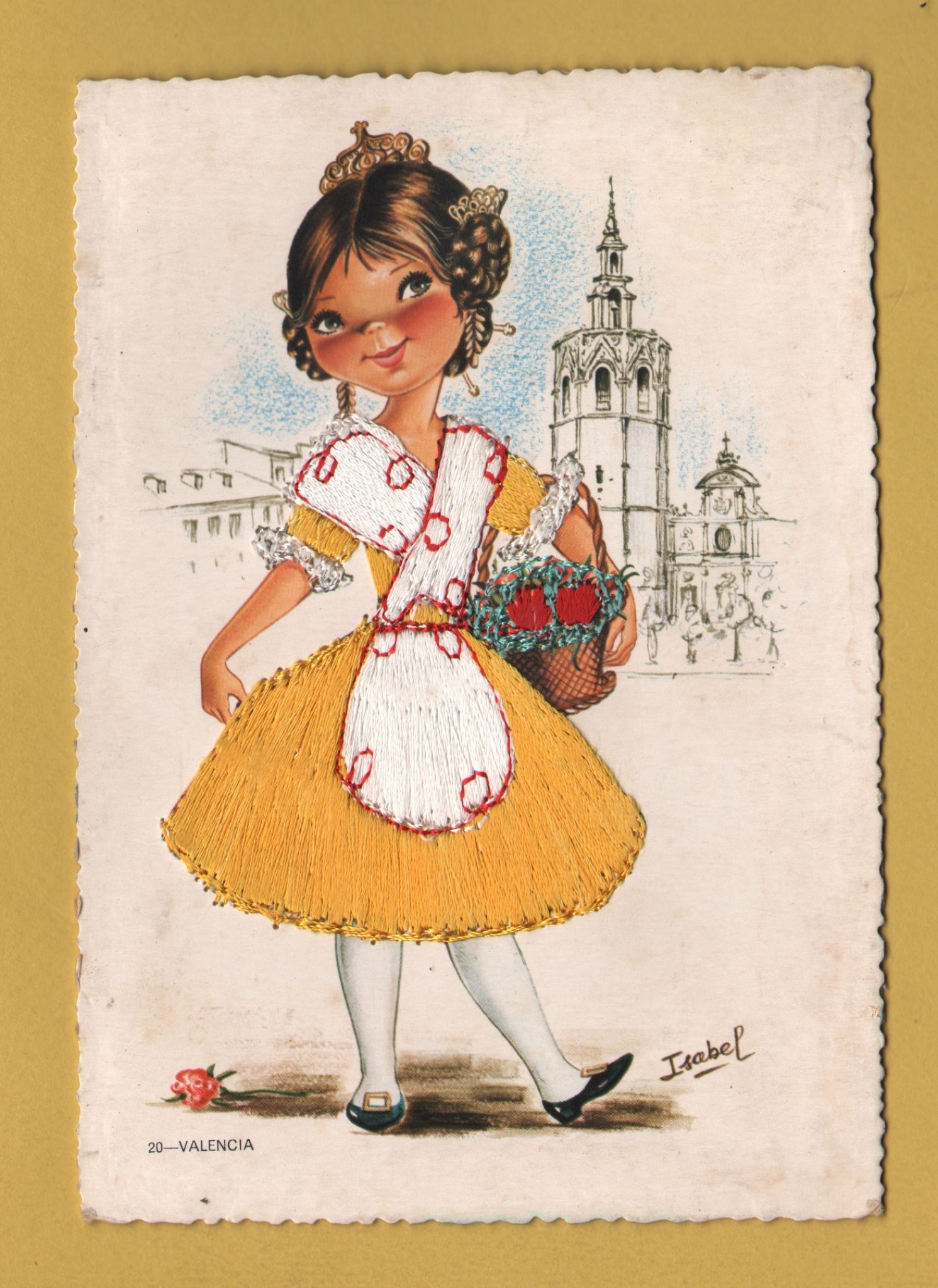 Tags: Spanish Needlework Postcard, Isabel, Valencia:Used, 1974, Alcala Postcard.