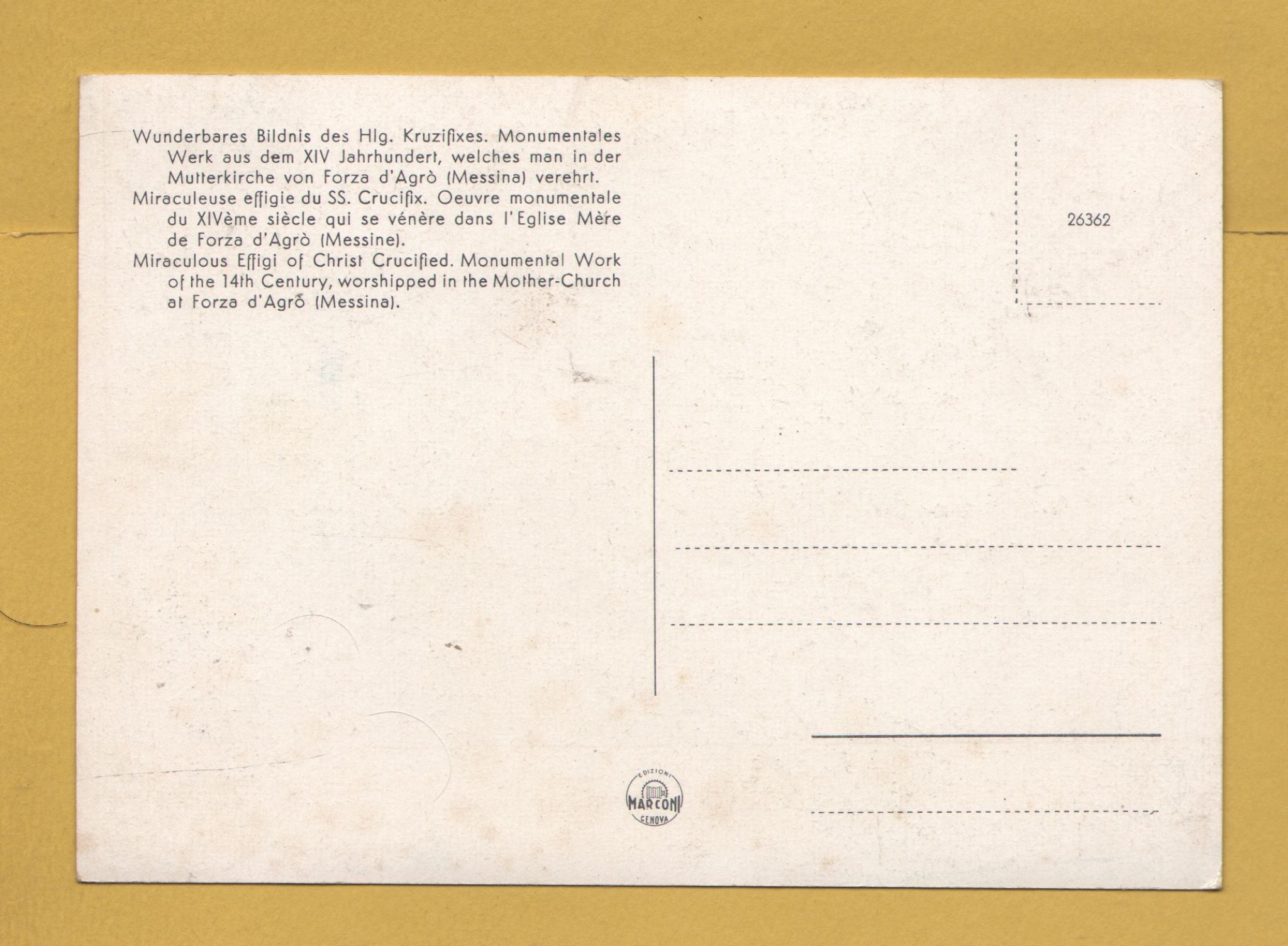 `Messina - Forza d`Agro - `Effigy of Christ Crucified` - Postally Unused - Marconi Postcard.