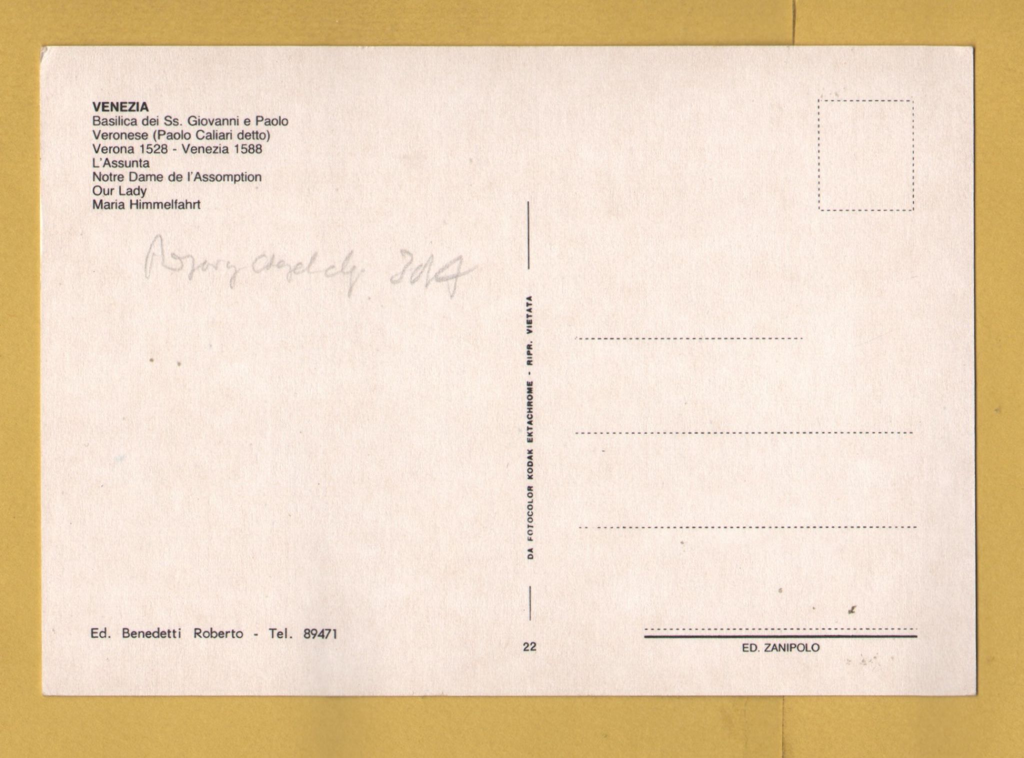 Tags: Venice, Basilica dei Ss. Giovanni e Paolo, Our Lady of the Assumption, Paolo Caliari:Unused, Benedetti Postcard.