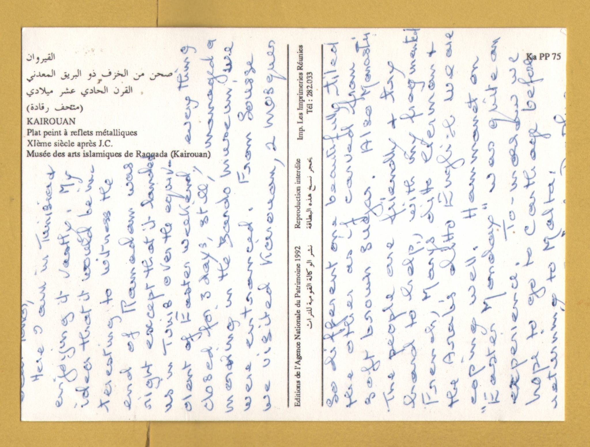 `Raqqada Museum - Kairouan - Metallic-Gloss painted Dish` - Postally Unused (although message written to rear) - Museum of Islamic Arts Postcard.