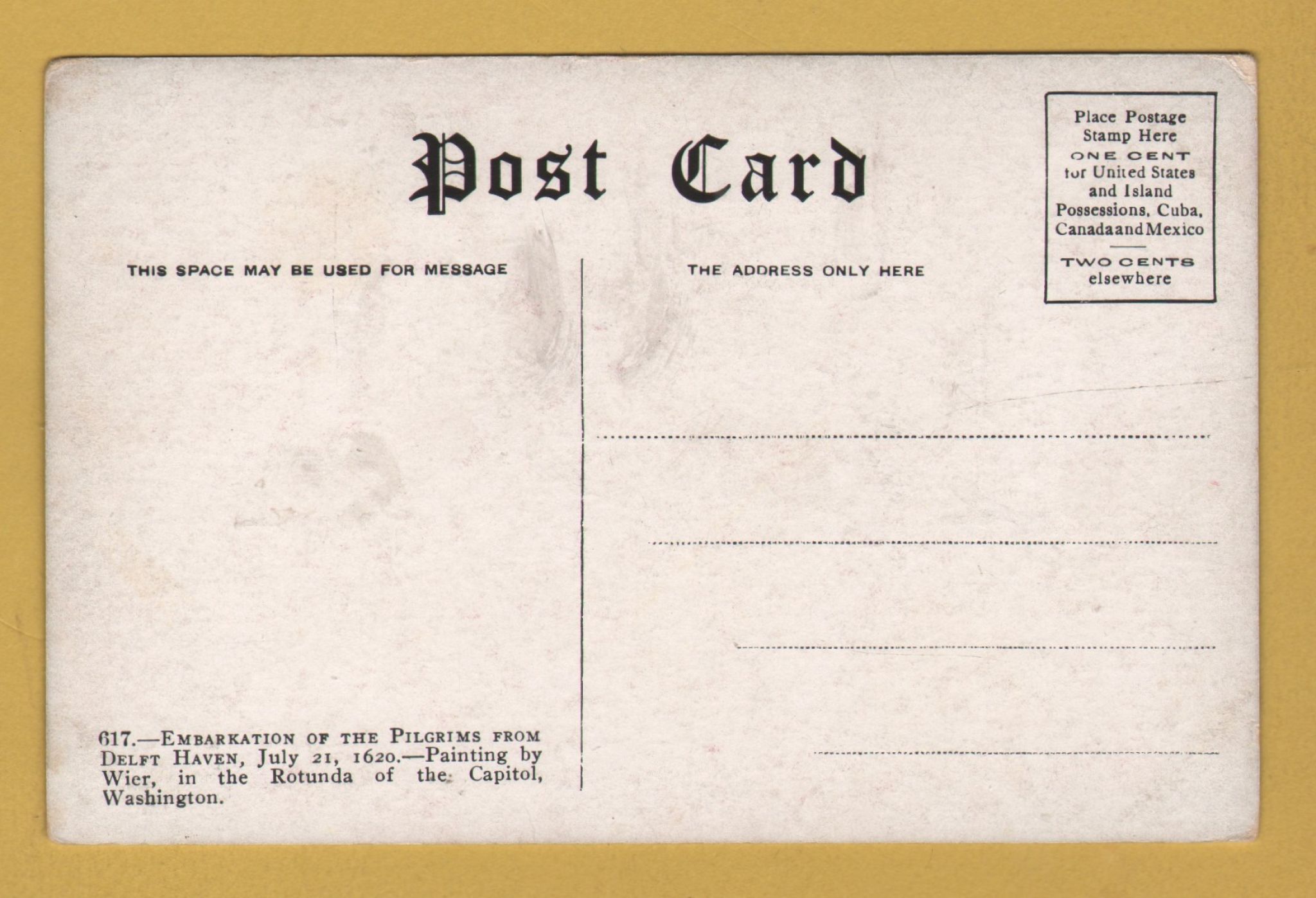 `Embarkation of the Pilgrims from Delft Haven, July 1620 by Wier` - Postally Unused - Unknown Producer