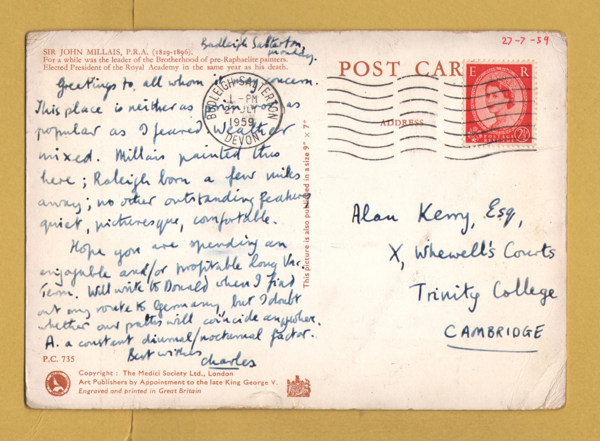 `The Boyhood of Raleigh by Sir John Millais` - Postally Used-1959 - The Medici Society Postcard.